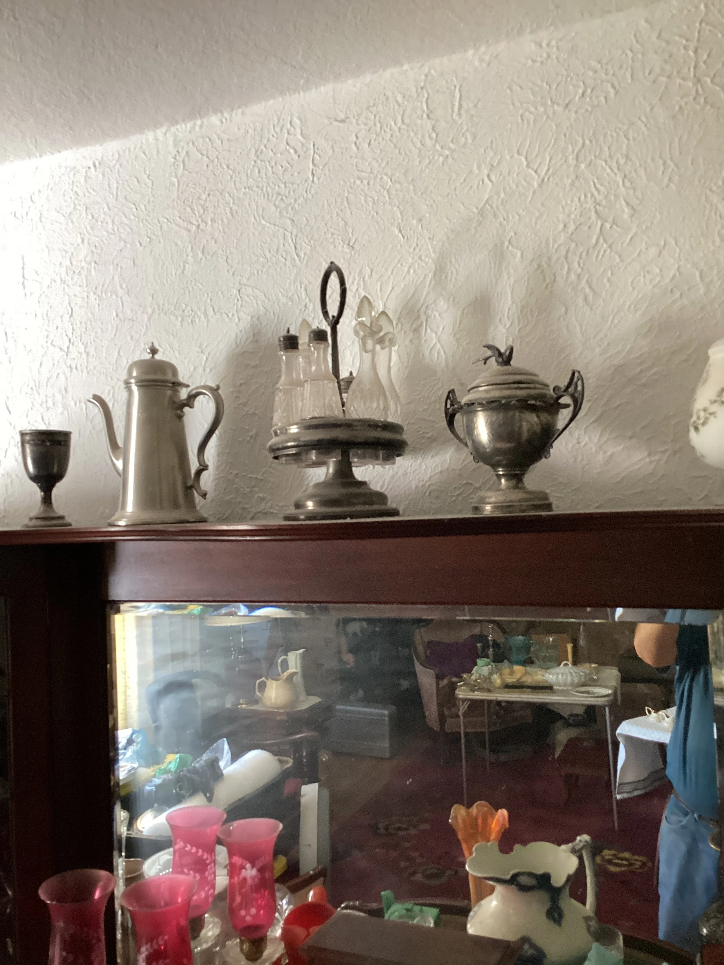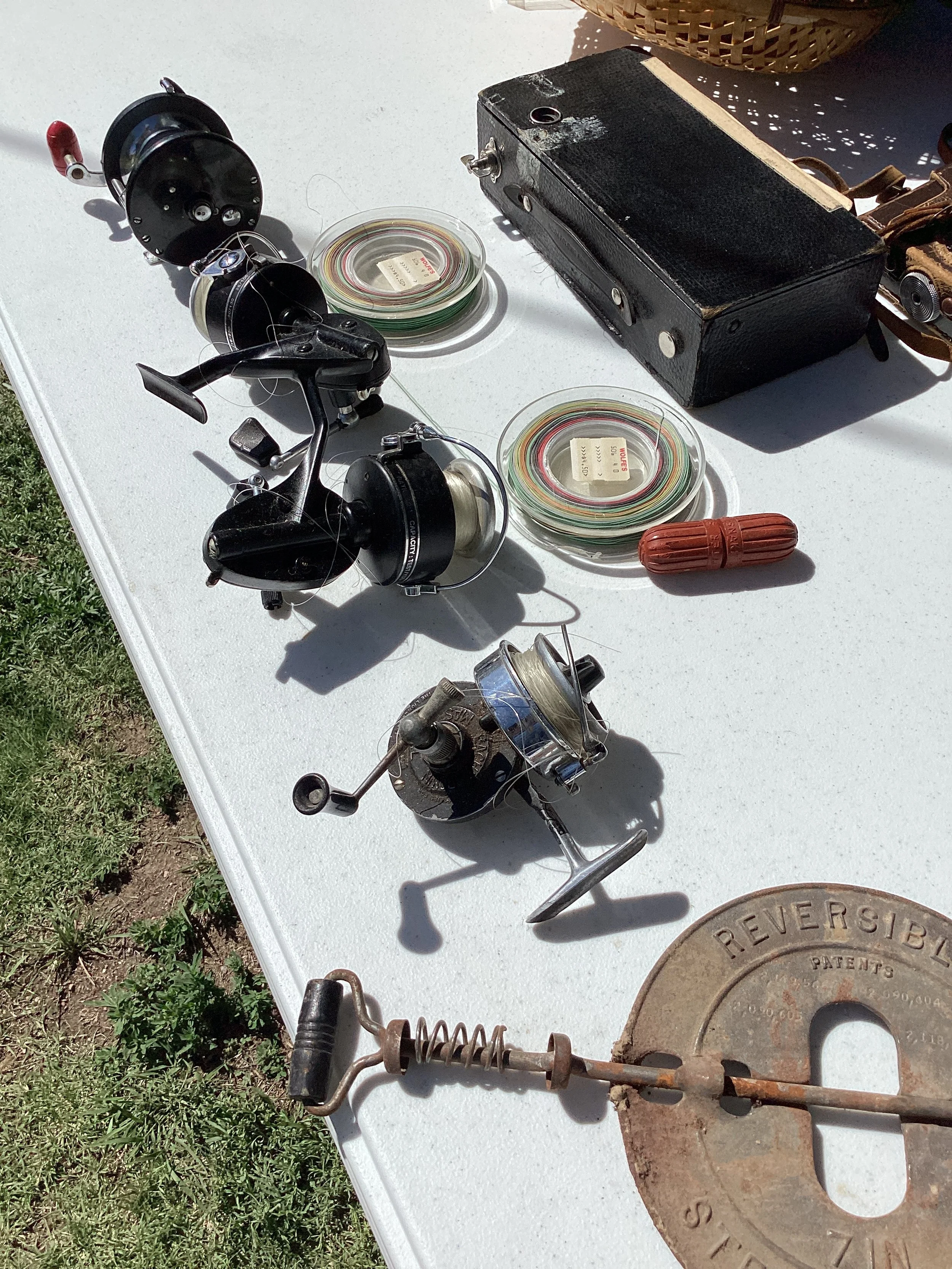 Virginia Dare Bottle, Lydia Pinkhams Bottle, 1916 Brecks Seed Catalog, Vintage Magazines, Mickey Mouse Coloring Book, Spice Tins, Vintage Ladies & Mens Hats, Purple & Blue Glass Jars, Cookie Jars, Vintage Transit & Stand, Enamel Ware, Fancy Coasters, Yard Sticks, Vintage Christmas Ornaments, Bubble Lights, Double Blade Ax, Mechanical Drawing Set, Vintage Kitchen Utensils / Rolling Pins, Wooden Shaft Golf Clubs, Oak Wall Phones, Victrola 78 Records, Hand Blown Glass Floats (Various Sizes & Colors – Very Cool), Antlers, Moose Antlers, Trunks, Ice Skates, Antique Lawn Tractor Sprinkler, Toboggan, Wood Pulleys, Typewriters, Kids Wagon, Bird Cage W/ Stand, Old Saddles, Millwright Tools, Watering Cans, Oak Well Rods (Several), #15 Redwing Crock, #4 Redwing Crock, Crock Bowls, Crock Jugs, Car Hood Ornaments, CI Tea Kettle, Old Percolator, Aladdin Lamps, Political Map Of Europe in Carrying Case School Type, Set Of Aladdin Lamps W/ Chimneys & Glass Shades, Aladdin Lamp Shade, Louis Lamour Paperback Books, Children’s Books, Antique & 1st Edition Books, Set Of Shakespeare Books, Cookbooks, Glass Doorknobs, Set Of 4 Glass Clawfoot Table Legs, Picture Frames, Rough Cut Walnut Slabs (Several), Gold Gilded Frames, Framed Print El Capitan #539, Doilies & Handiwork, Costume Jewelry, 45s & Record Albums, Alaskan Indian Woven Baskets, Art Books, Oriental Dolls, Toy Violin Collection, Violin German Full Sized, Violin France ¾ Size, Vintage Mens Collar Box & Collars, Stetson Cowboy Hat In Box & Resistol Cowboy Hat In Box, Horse Statues, Spinning Wheels (2), Silver Plate Serving Pcs, Sheet Music, Antique Light Bulbs, Tabletop Coffee Grinder, Dixie Queen Tobacco Tin, Croquet Set, Brass Bed, Wooden Cream Separator, Kids Toys & Games, Vintage Navajo Weaving Doll W/ Loom, Toy Cap Pistol & Holster, Friction Toy Car, Fishing Reels, Box Camera Collection, Drs Bag, RCA VCR Camera, Pocket Knives.