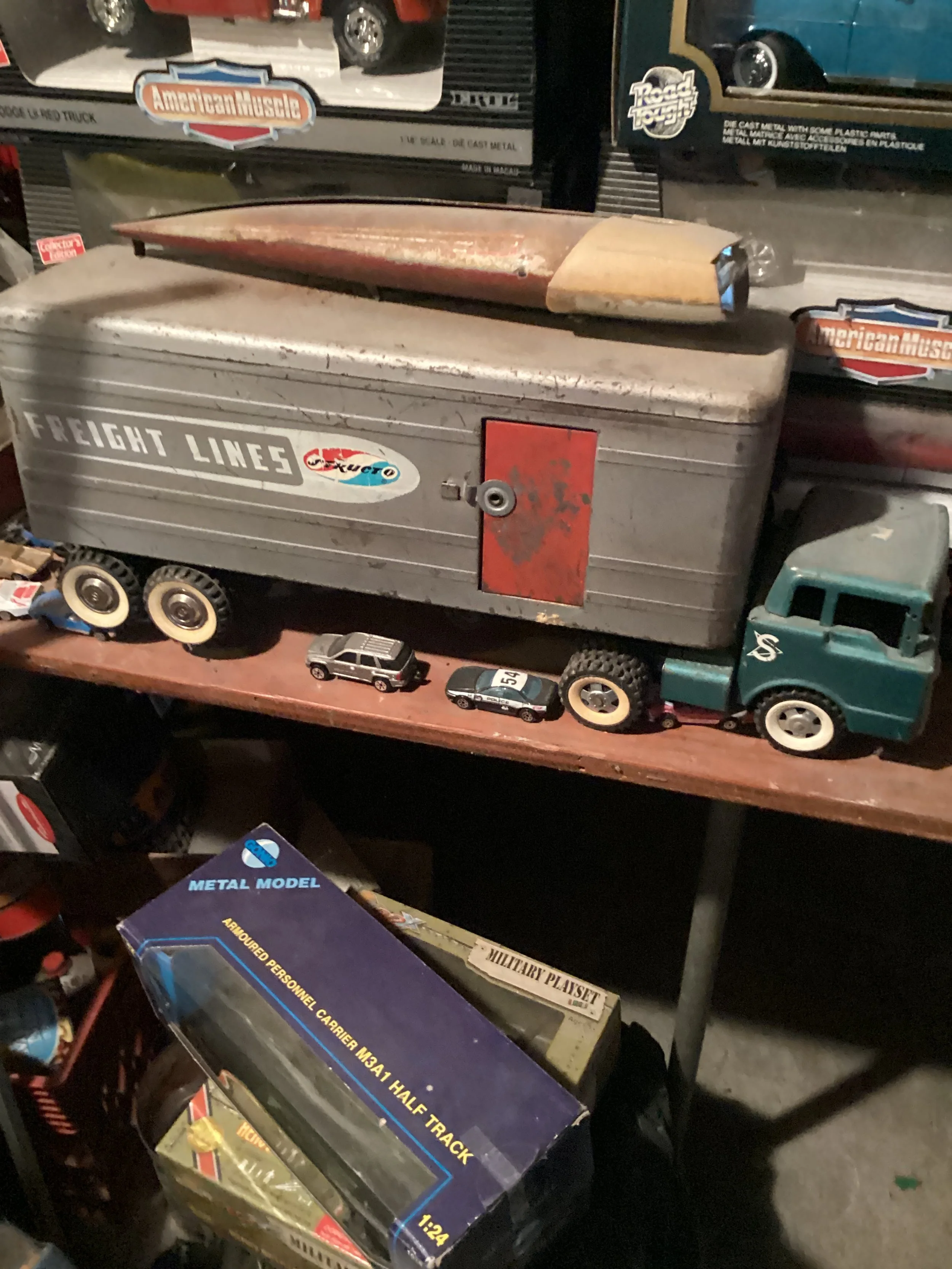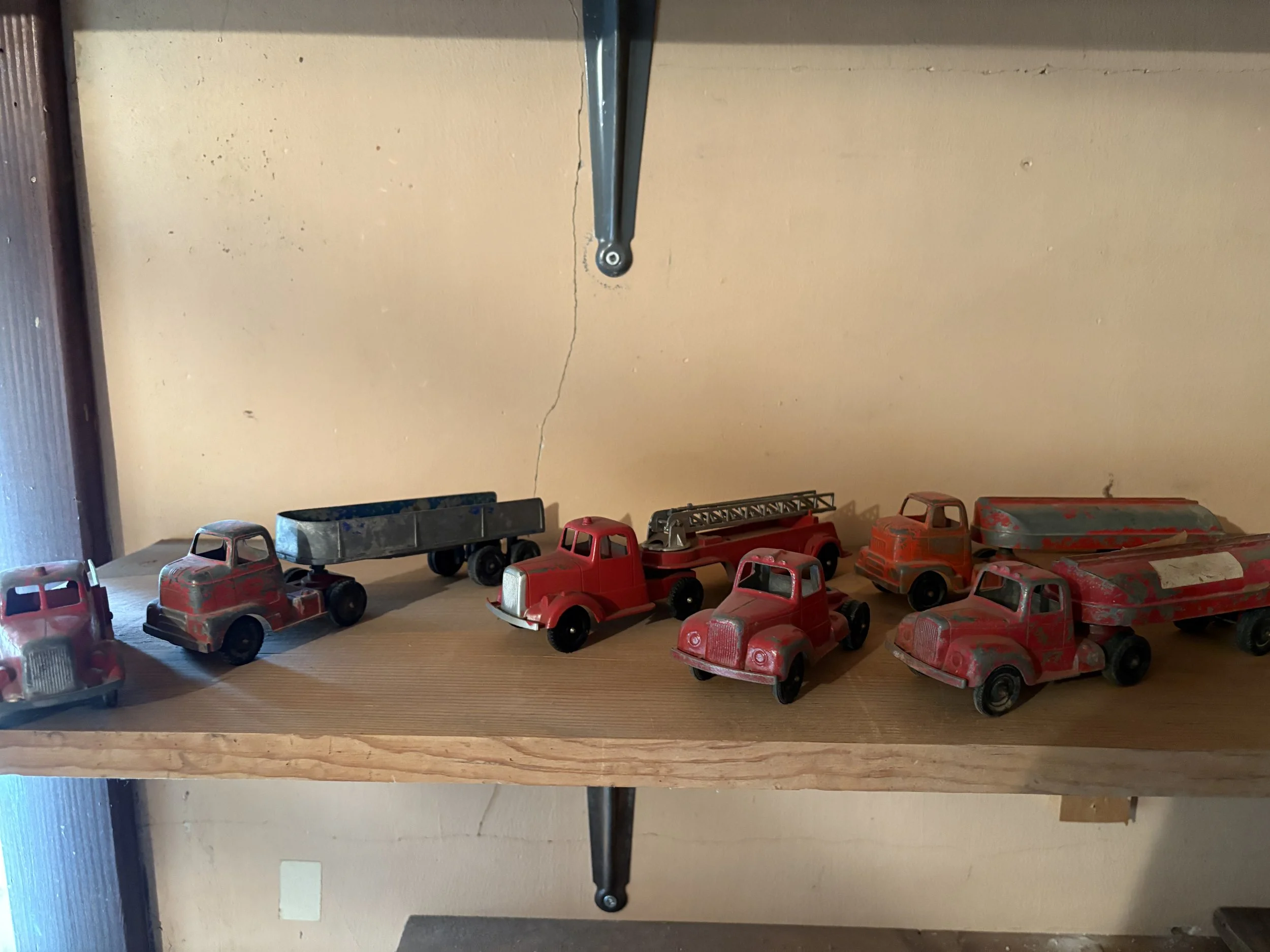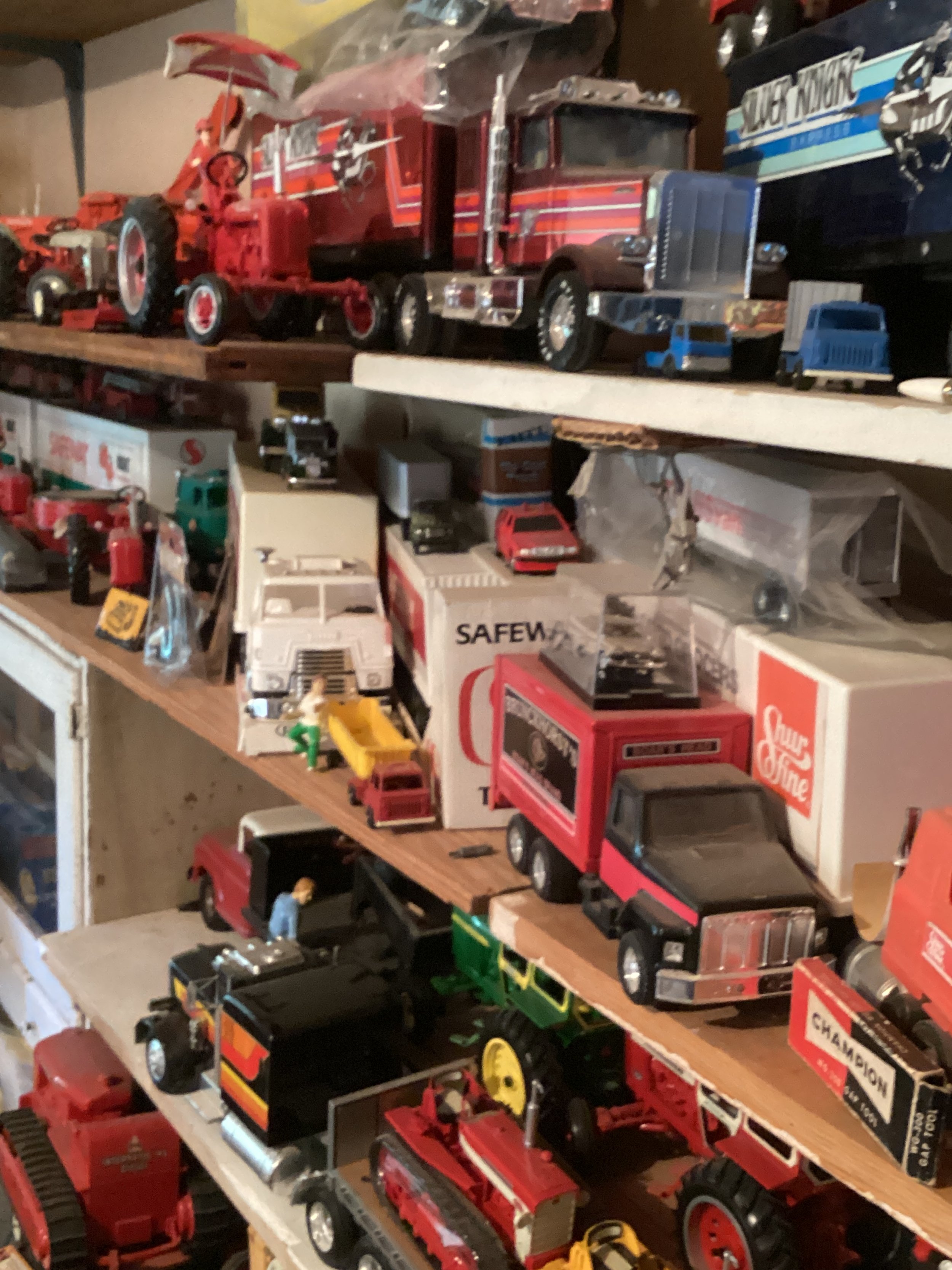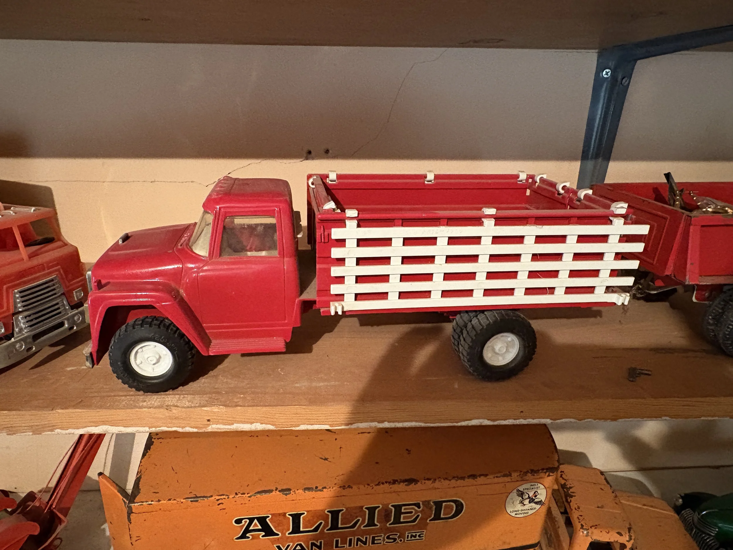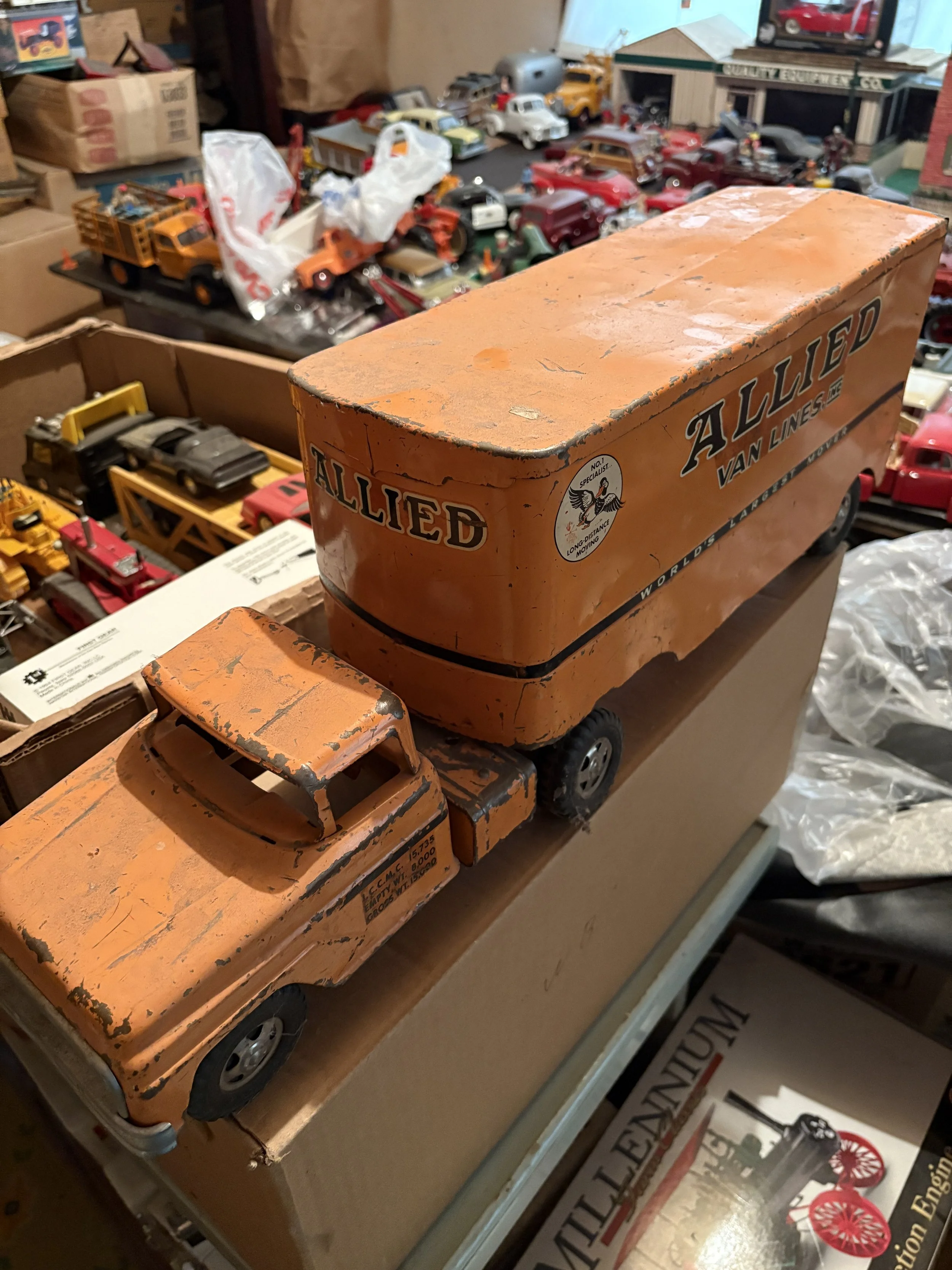 Large Collection of Vintage Tonka, Structo, Nylint & Tru-Scale Pickups & Advertising Semis!! Toy Collectible Display Accessories-People-Signs-Buildings-Etc!! 1920 Buddy L Custom White Ladder Fire Truck, 1920’s Keystone Packard Fire Ladder Truck w/ Hose Bell & Fireman, Packard Tow Truck, 1920’s Kelmet White Big Boy Dump Press Steel Toy, 1956 AAA Tonka Toy Truck, 1930’S Steelcraft Little Jim Mack Cab Dump Truck, Hess Gasoline Truck, Ltd Edition Texaco Coin Bank W/ Original Display, NAPA Trucks & Pick Ups Boxed, Corn Husker NP NE Semi, Structo Airlines Truck, Coop Semi Tanker, Coop Semi Box Van, Structo Freight Liner, Tonka Grain Hauler, Tonka Logging Truck, Tonka Fire Engine, Structo Dump Truck, Several Tonka Pickups, Dodge Ram 3500, Tru Scale Pickup, USSR Hydraulic Dump Truck, AZLK Excavator Made in USSR (Rare), 1950’s Tonka Starkist / Delivery Truck, 1956 Tonka Morrell Meats Semi Refer Truck, 1850 Tru Scale IH Grain Stake Truck, Structo Redi-Mix Truck & Flatbed Equipment Trailer, Buckeye Trucks-Cab & Flatbed Semi, Tonka Sandloader, Structo City Of Toyland #7 Utility/Garbage Truck, Hubley Kiddie Toy #494 Dragline, Ertl IH Loadstar Gravity Wagon Feed Truck, 1950’s Tonka Toter Truck & Camp Trailer, Wyandotte Truck Lines Semi, Tonka Custom Service Truck, Tonka Allied Van Lines Truck, Car Hauler, Nylint Firestone Firehawk Transport w/ Cars, Schwann’s Ice Cream Truck