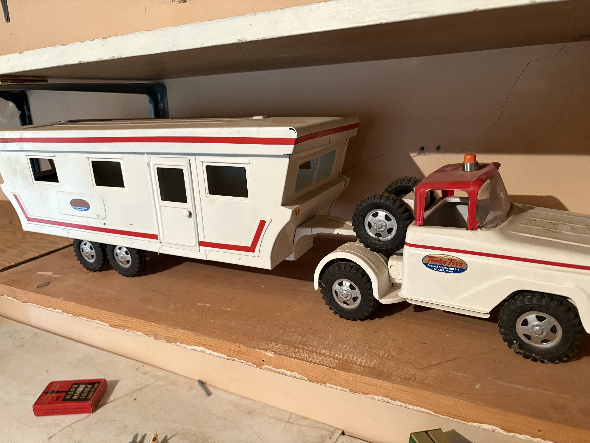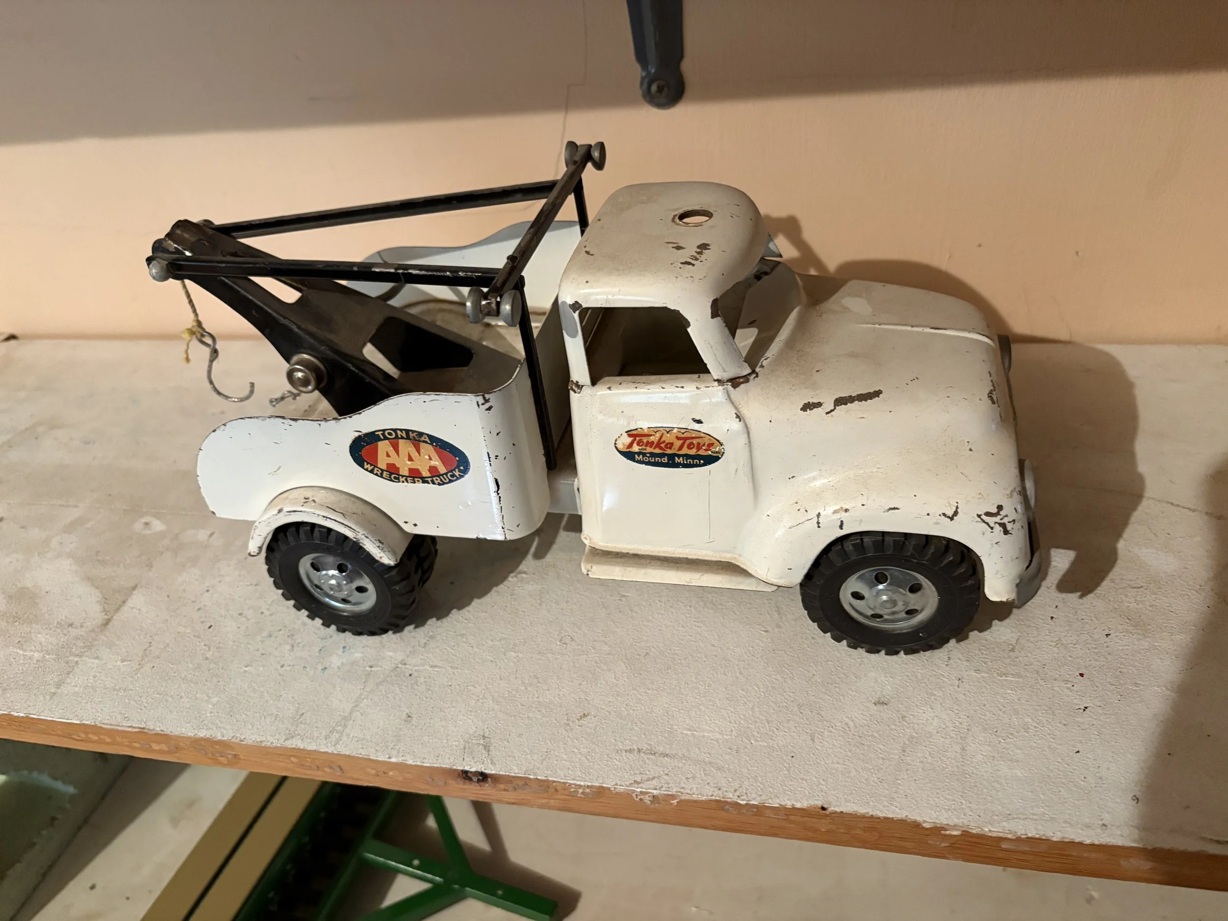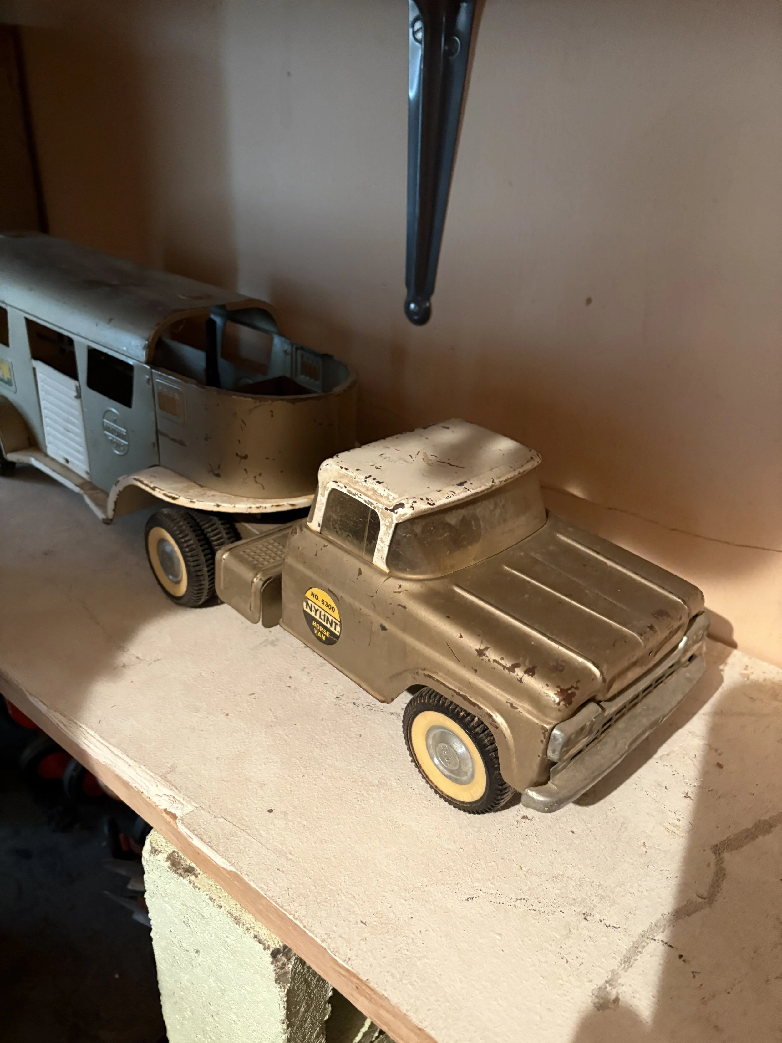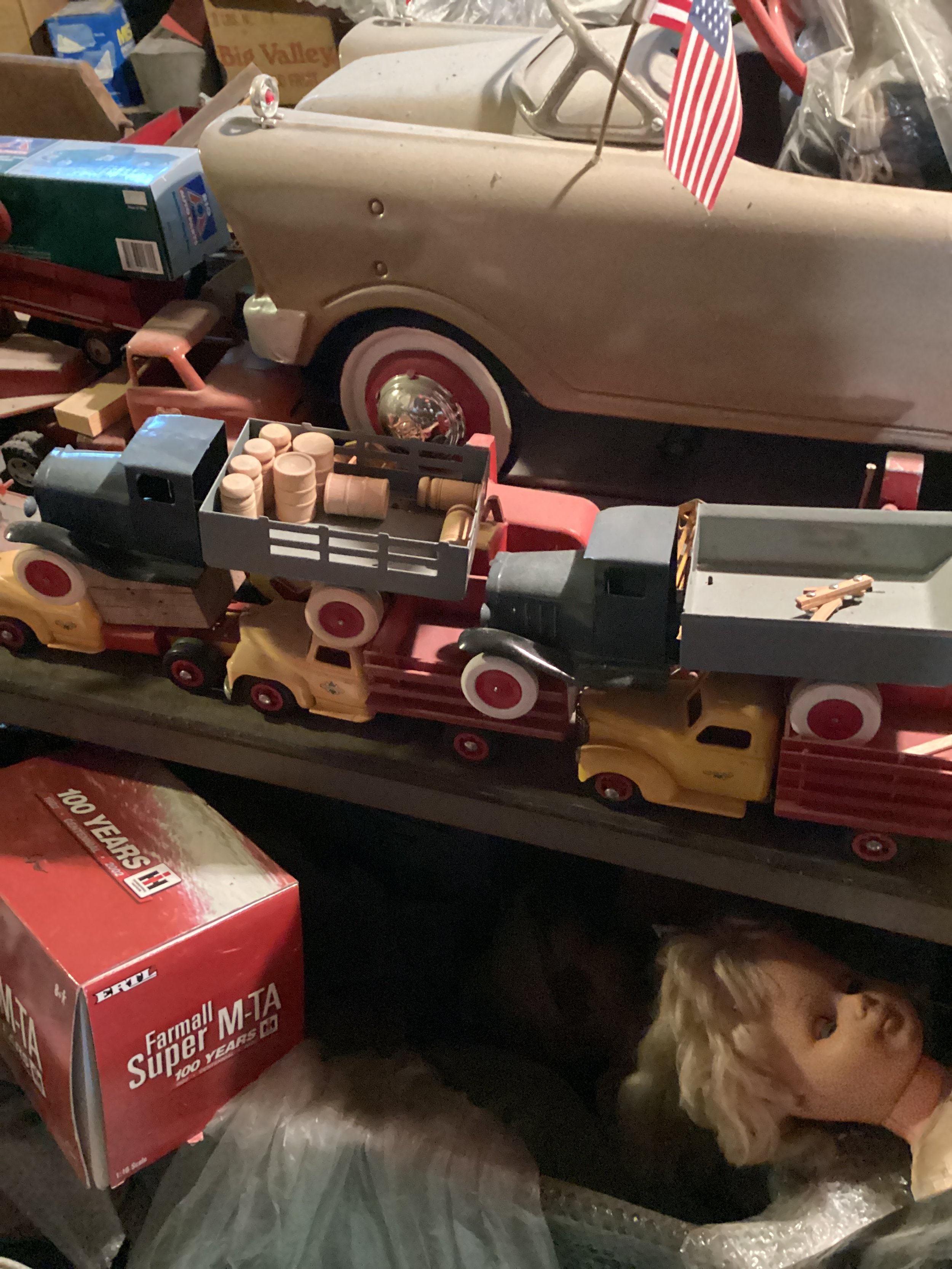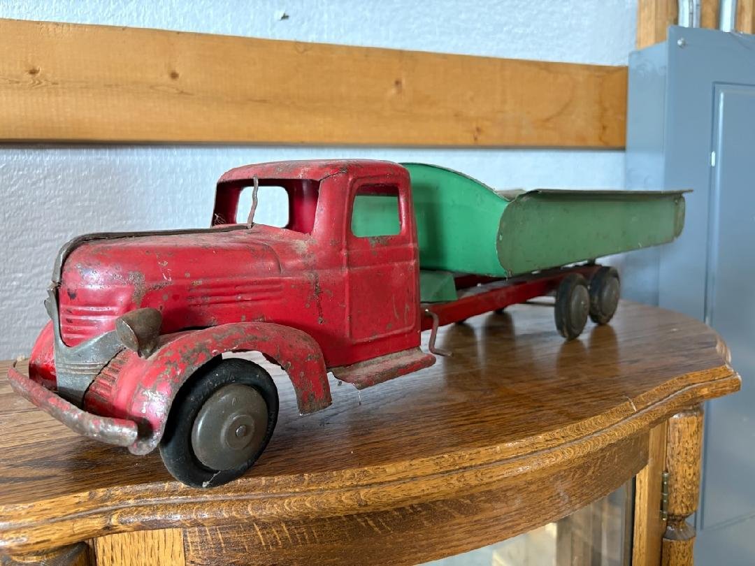 Large Collection of Vintage Tonka, Structo, Nylint & Tru-Scale Pickups & Advertising Semis!! Toy Collectible Display Accessories-People-Signs-Buildings-Etc!! 1920 Buddy L Custom White Ladder Fire Truck, 1920’s Keystone Packard Fire Ladder Truck w/ Hose Bell & Fireman, Packard Tow Truck, 1920’s Kelmet White Big Boy Dump Press Steel Toy, 1956 AAA Tonka Toy Truck, 1930’S Steelcraft Little Jim Mack Cab Dump Truck, Hess Gasoline Truck, Ltd Edition Texaco Coin Bank W/ Original Display, NAPA Trucks & Pick Ups Boxed, Corn Husker NP NE Semi, Structo Airlines Truck, Coop Semi Tanker, Coop Semi Box Van, Structo Freight Liner, Tonka Grain Hauler, Tonka Logging Truck, Tonka Fire Engine, Structo Dump Truck, Several Tonka Pickups, Dodge Ram 3500, Tru Scale Pickup, USSR Hydraulic Dump Truck, AZLK Excavator Made in USSR (Rare), 1950’s Tonka Starkist / Delivery Truck, 1956 Tonka Morrell Meats Semi Refer Truck, 1850 Tru Scale IH Grain Stake Truck, Structo Redi-Mix Truck & Flatbed Equipment Trailer, Buckeye Trucks-Cab & Flatbed Semi, Tonka Sandloader, Structo City Of Toyland #7 Utility/Garbage Truck, Hubley Kiddie Toy #494 Dragline, Ertl IH Loadstar Gravity Wagon Feed Truck, 1950’s Tonka Toter Truck & Camp Trailer, Wyandotte Truck Lines Semi, Tonka Custom Service Truck, Tonka Allied Van Lines Truck, Car Hauler, Nylint Firestone Firehawk Transport w/ Cars, Schwann’s Ice Cream Truck