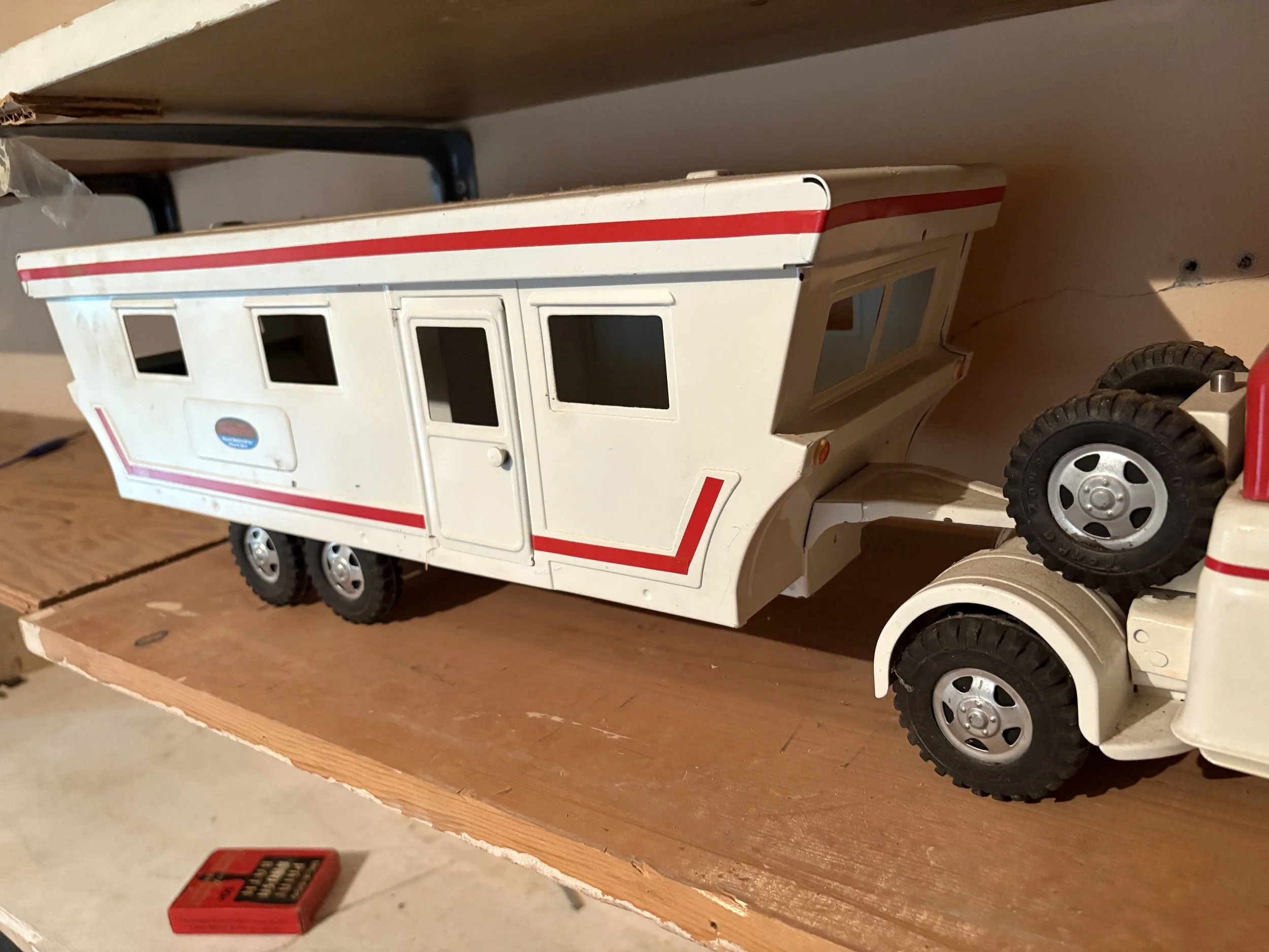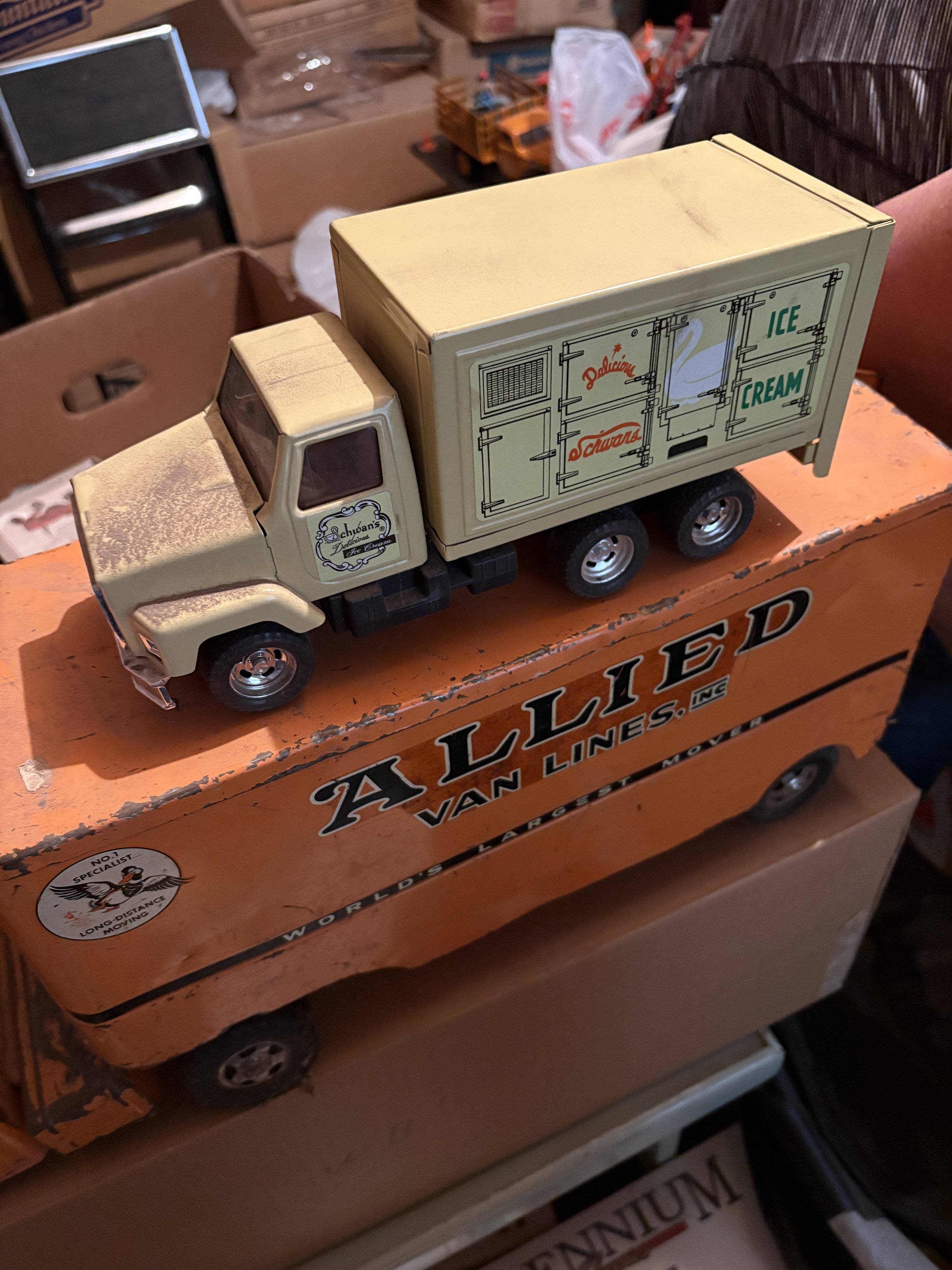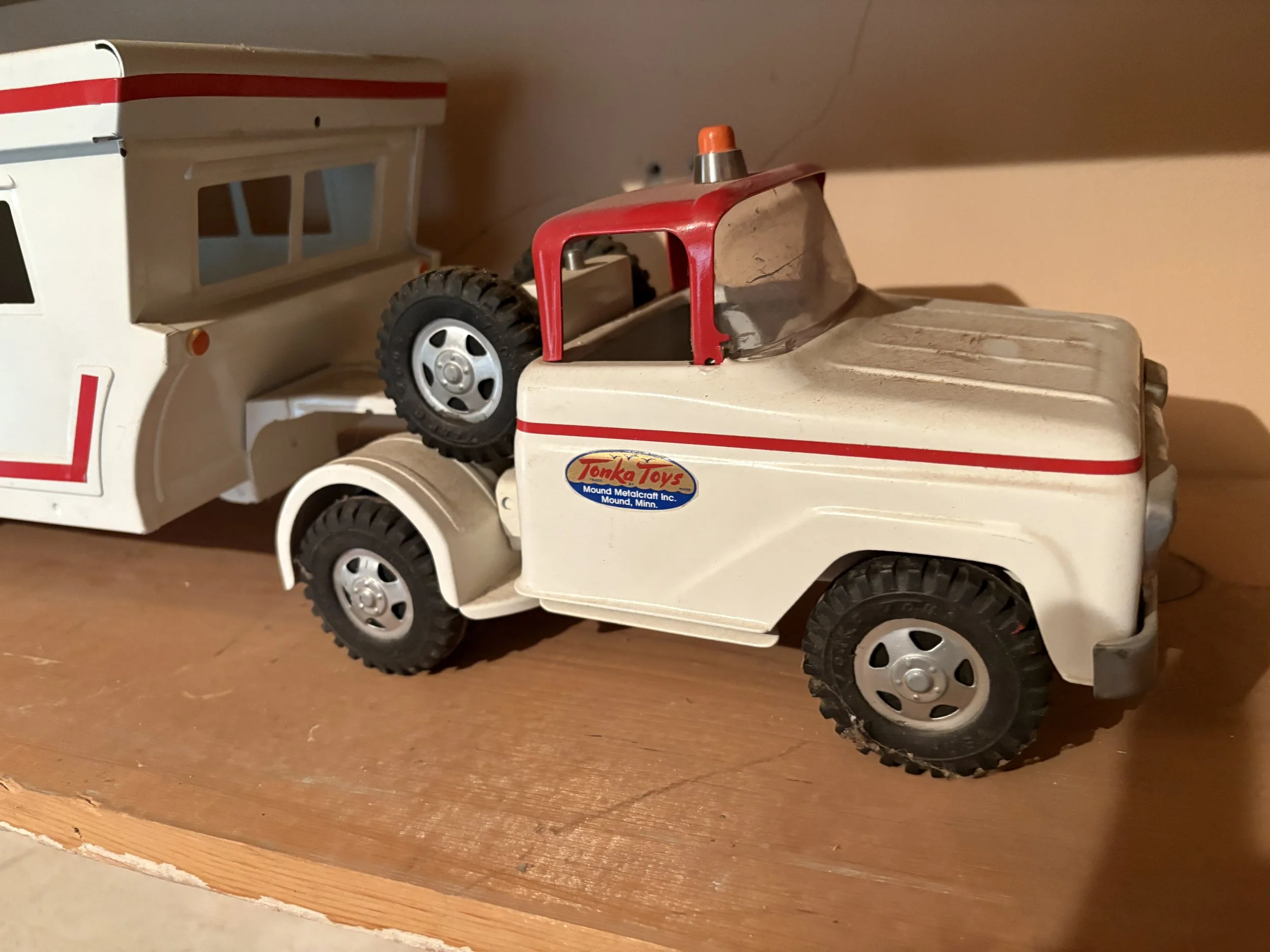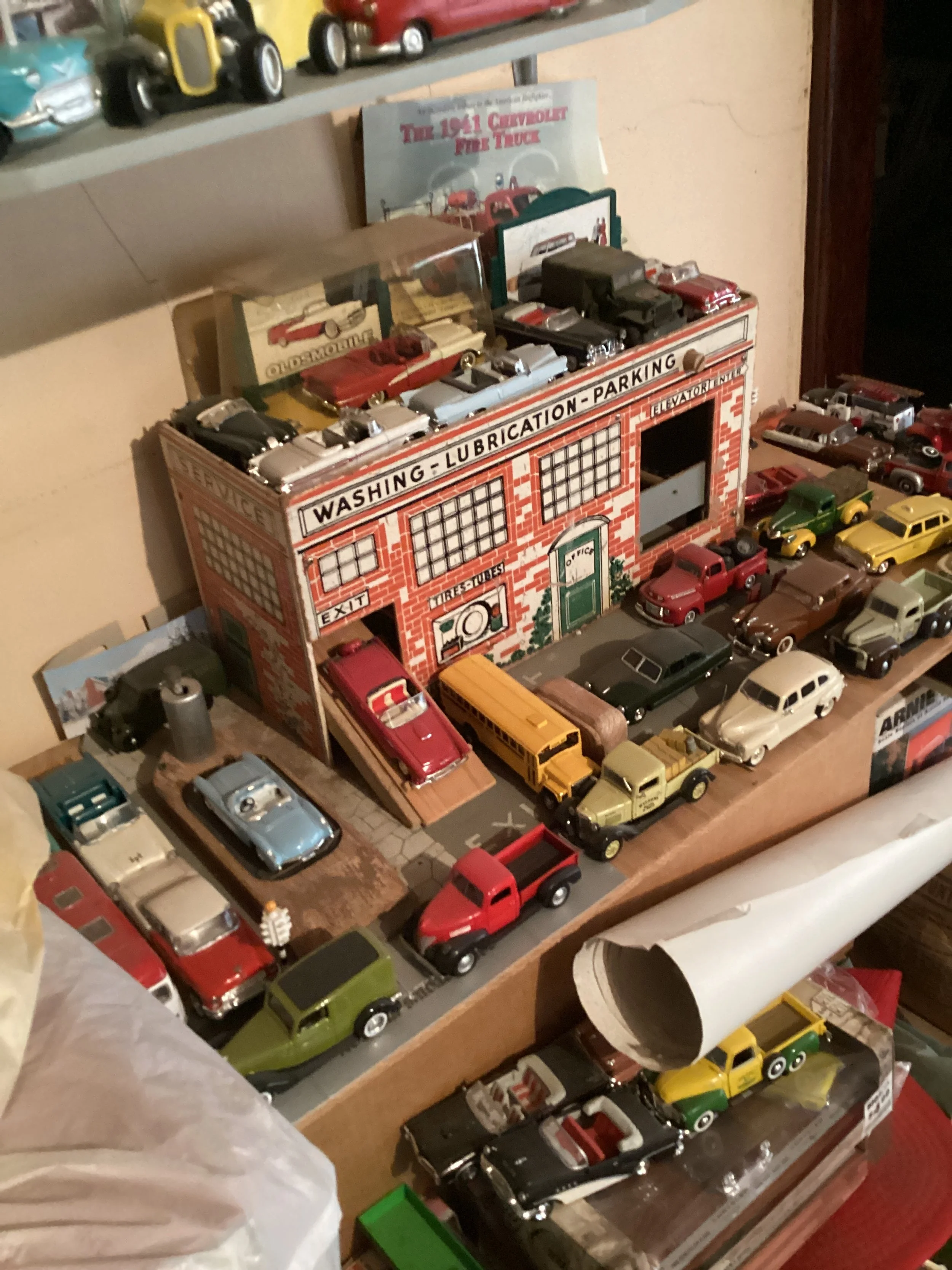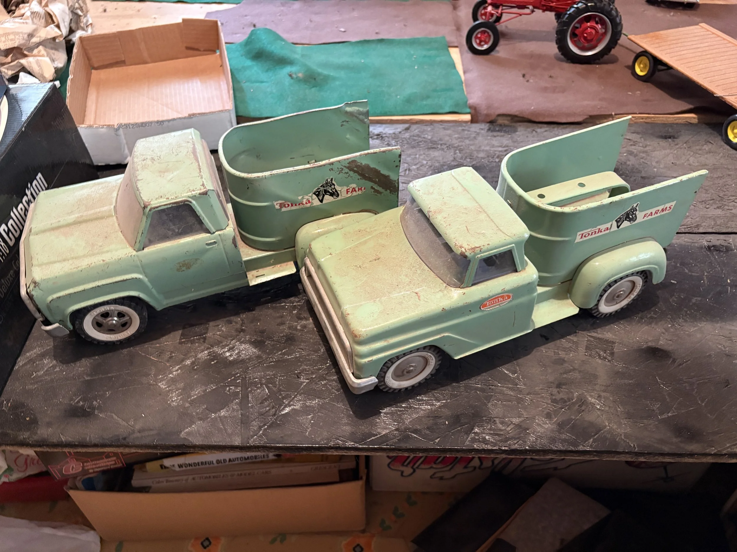 Large Collection of Vintage Tonka, Structo, Nylint & Tru-Scale Pickups & Advertising Semis!! Toy Collectible Display Accessories-People-Signs-Buildings-Etc!! 1920 Buddy L Custom White Ladder Fire Truck, 1920’s Keystone Packard Fire Ladder Truck w/ Hose Bell & Fireman, Packard Tow Truck, 1920’s Kelmet White Big Boy Dump Press Steel Toy, 1956 AAA Tonka Toy Truck, 1930’S Steelcraft Little Jim Mack Cab Dump Truck, Hess Gasoline Truck, Ltd Edition Texaco Coin Bank W/ Original Display, NAPA Trucks & Pick Ups Boxed, Corn Husker NP NE Semi, Structo Airlines Truck, Coop Semi Tanker, Coop Semi Box Van, Structo Freight Liner, Tonka Grain Hauler, Tonka Logging Truck, Tonka Fire Engine, Structo Dump Truck, Several Tonka Pickups, Dodge Ram 3500, Tru Scale Pickup, USSR Hydraulic Dump Truck, AZLK Excavator Made in USSR (Rare), 1950’s Tonka Starkist / Delivery Truck, 1956 Tonka Morrell Meats Semi Refer Truck, 1850 Tru Scale IH Grain Stake Truck, Structo Redi-Mix Truck & Flatbed Equipment Trailer, Buckeye Trucks-Cab & Flatbed Semi, Tonka Sandloader, Structo City Of Toyland #7 Utility/Garbage Truck, Hubley Kiddie Toy #494 Dragline, Ertl IH Loadstar Gravity Wagon Feed Truck, 1950’s Tonka Toter Truck & Camp Trailer, Wyandotte Truck Lines Semi, Tonka Custom Service Truck, Tonka Allied Van Lines Truck, Car Hauler, Nylint Firestone Firehawk Transport w/ Cars, Schwann’s Ice Cream Truck