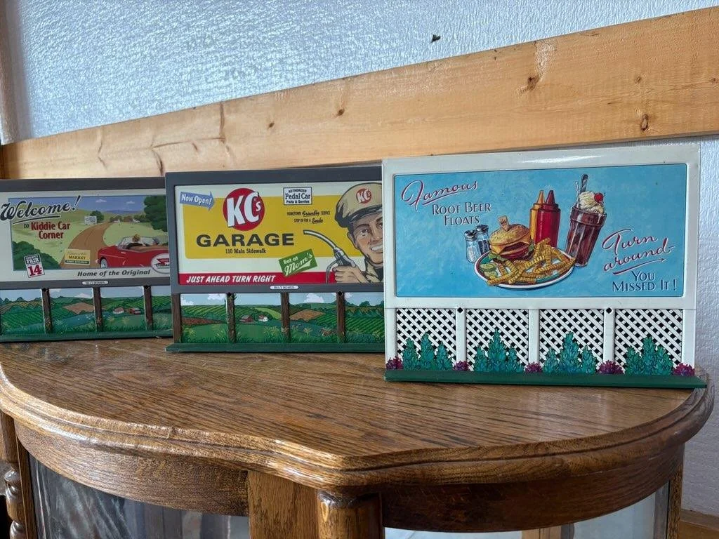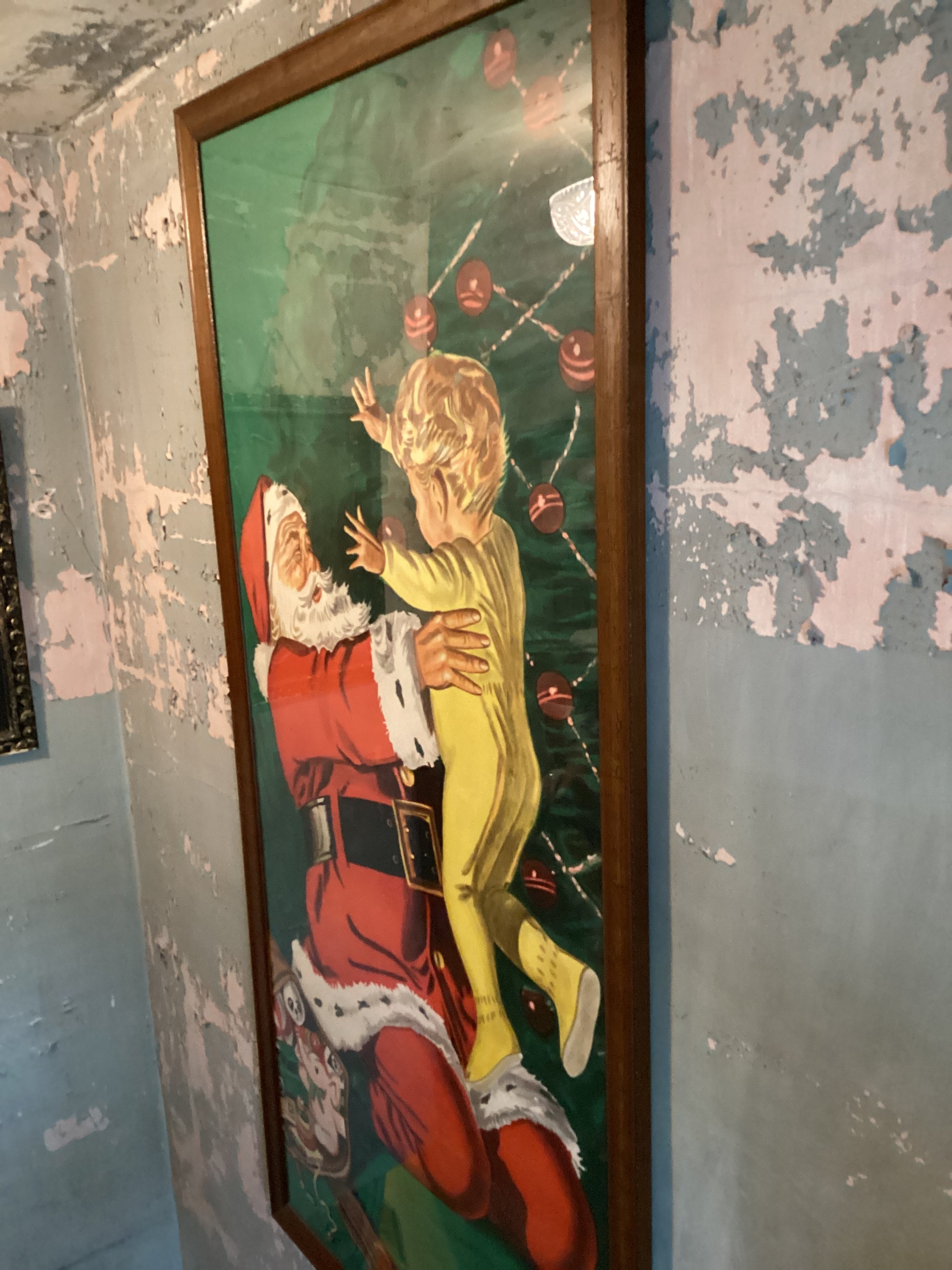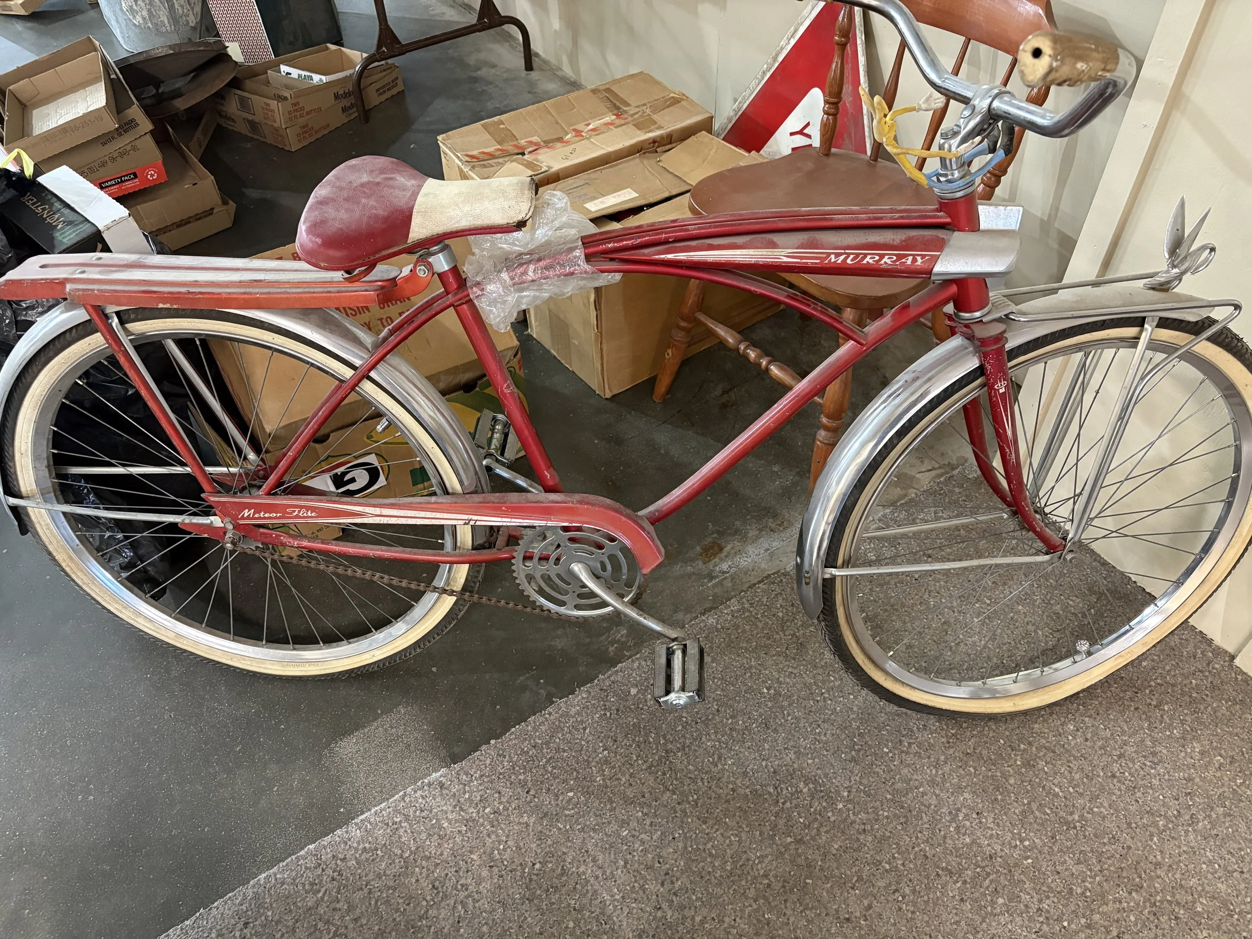 1921 Big Circle Coyote & Rabbit Hunt Chase & Perkins County Yard Long Framed Photo (Very Cool), 1940’s 6’ Santa Store Poster (Very Cool), Marble Gear Shift Knob. Hatpins & Hatpin Holders, Oil Lamps, Silhouettes, Gilded Frames, Canes, Copper Boiler, Cast Iron Sheep Herder Stove, Washboards, Large Brass School Bell, Milk Cans & Strainers, Roseville #82-5 Vase, Van Briggle Pottery, 2 Mantel Clocks, Oak Wall Phone (Great Condition), Kitty Cat Yard Long Framed, Ramor’s Jeweler & Hammond Optometrist Vintage Advertising Wall Clock, Gooch’s Best Flour Sacks, Table Model Cream Seperator, 1918 NE License Plate, Tin Cake/Pie Carrier, Kitchen Scale, Sunbeam Mix Master Churn Attachment, Layton Co Tin, Lacto Dextrin Tin, Apple Peelers, Fruit Sieve, Meat Grinders, Range Top S&P Set, Sailboat Ref Set, Wallmount Oil Lamp Bracket, Enamel Ware, Double & Single Match Holders, Door Knobs & Key Plates, Carousel Horses, Small Child’s Tea Sets, Straight Razors, Razor Straps, Dresser Sets, Hankies, Costume Jewelry, Brother Sewing Machine, Sewing Baskets, Buttons, Child’s Doll Buggy, Dodd Debolt Alliance, NE Adv Mirror, Diamond T Truck Hub Cap, Lithograph Service Station w/ Elevator, 2 Child’s Mannequins, 2 Adult Mannequins, Vintage Dress Form, Children’s Vintage Games & Puzzles, Vintage Christmas Decorations, Christmas Village Pcs, Linens, Table Cloths, Doilies, Barn Lanterns, Oil Cans, 1960’s Murray Meteor Flite Men’s Bike, Kildare Lumber Paxton, NE Coal Hammer, Wooden Side Child’s Wagon On Steel Wheels (Rebuilt), Chaps