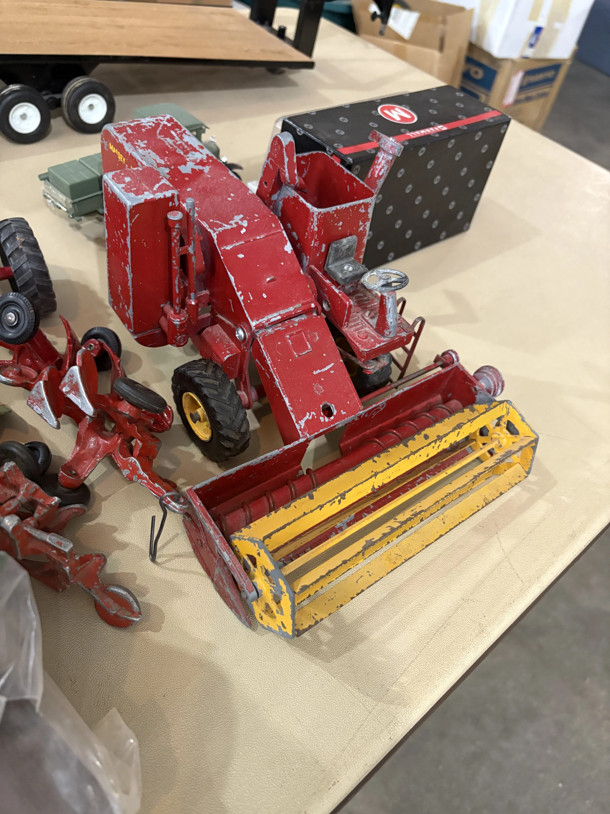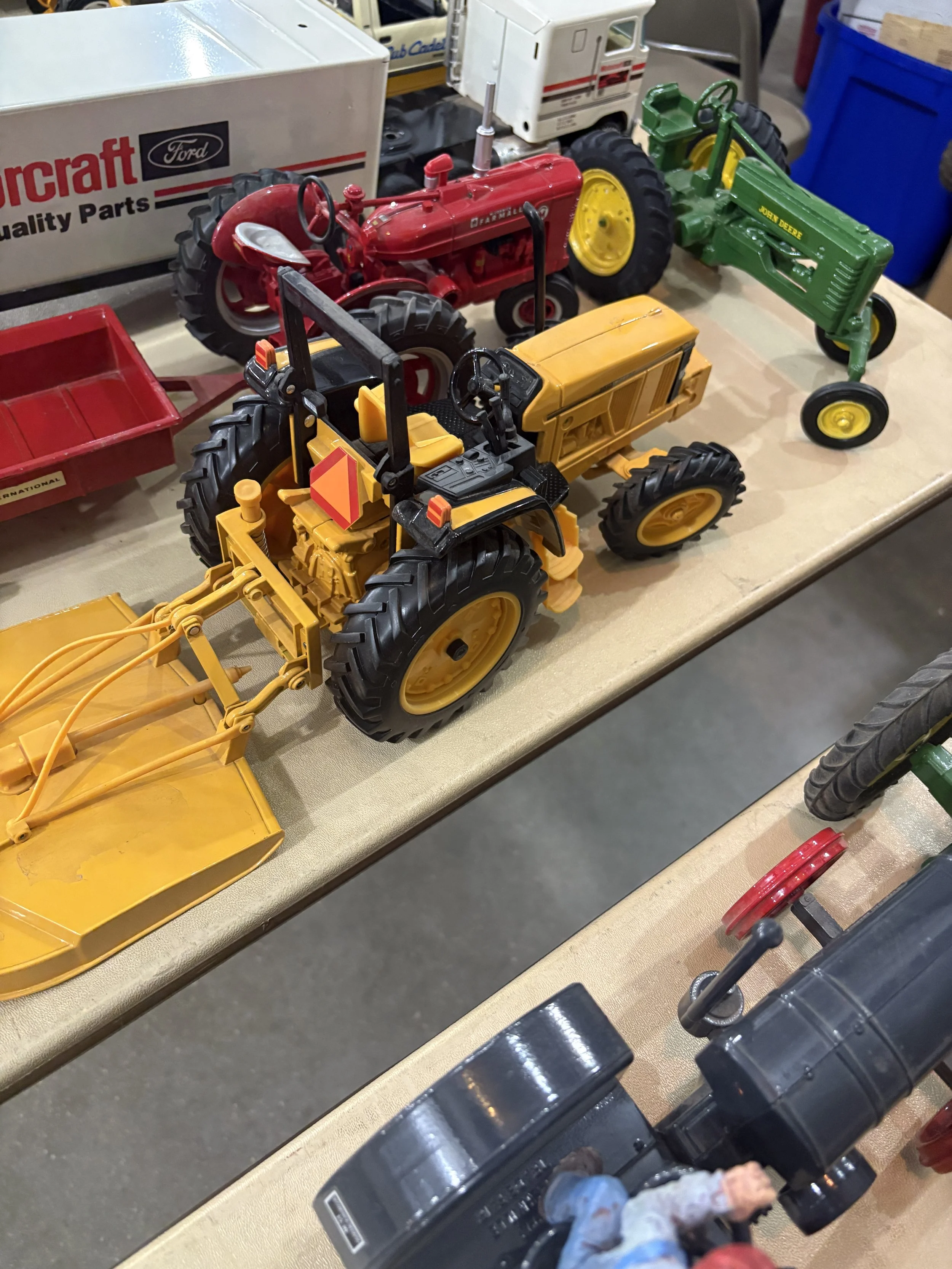 1/64th McCormick Farmall, Minneapolis Moline, International Harvester Spec Cast Highly Detailed White Farmall Cub, Spec Cast Pennsylvania Farm Show 2009 Case D Gas Tractor, Farmall C White Demonstrator, Farmall Cub w/ Sickle Mower, Spec Cast IH 300, Ertl 1954 Farmall 400 w/ Cultivator, IH w/ Hiniker Cab, John Deere 4010 w/ Hiniker Cab, Tru Scale IH Corn Picker, Ertl IH Yellow Industrial w/ Sheep Foot Roller, JD 60 Tractor w/ Corn Picker, Prestige Collection JD 55 Combine, Case-O-Matic Diesel #800, JD 12A Thrasher, IH Standard Diesel, JD 9, Construction Toys, White Fieldboss 4-210, IH 3588 2+2 4WD, Stieger Panther, Ford 8N w/ Bush Hog Rotary Cutter