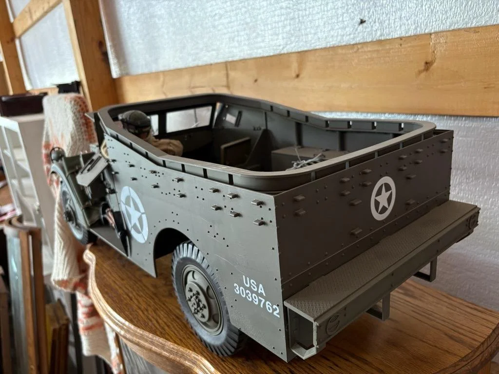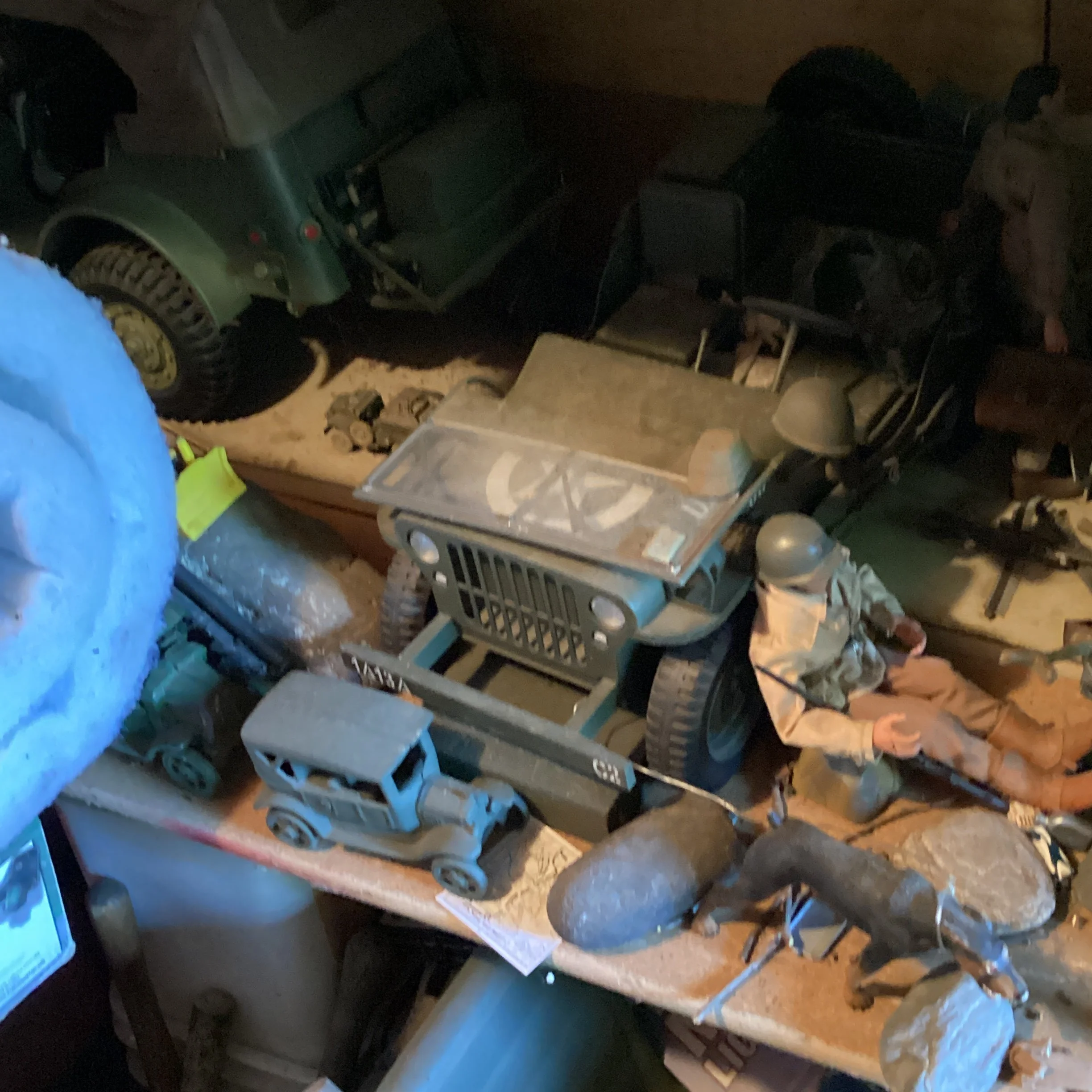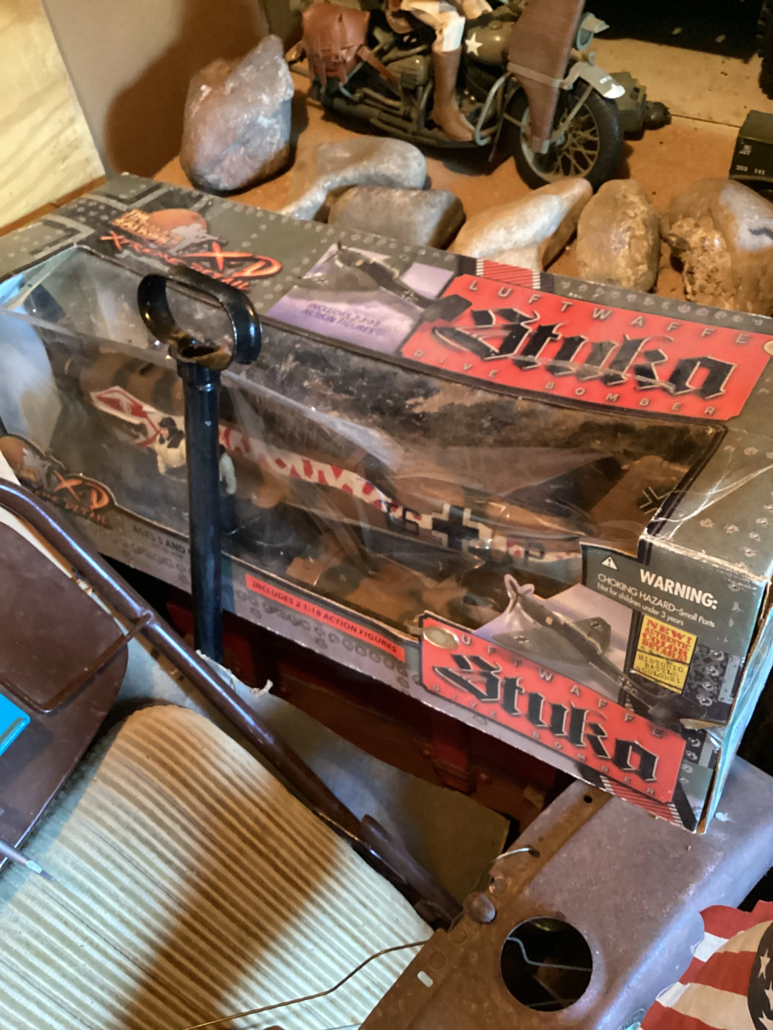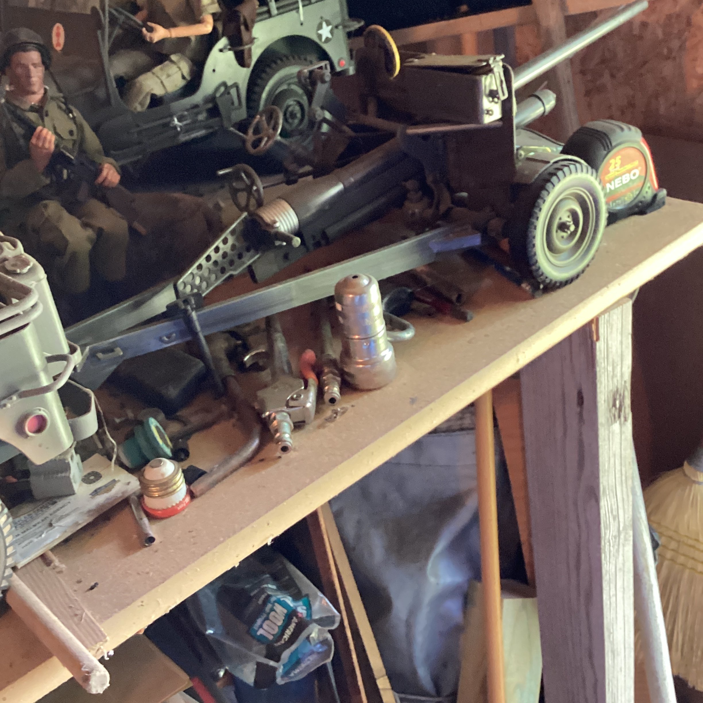 Large Collection of GI Joe Dolls, Jeeps, Tanks, Cannons & Toys Some Still Boxed. Helicopter Complete W/ Guns & Dolls, US Army Courier WLA 45 Harley Davidson NIB