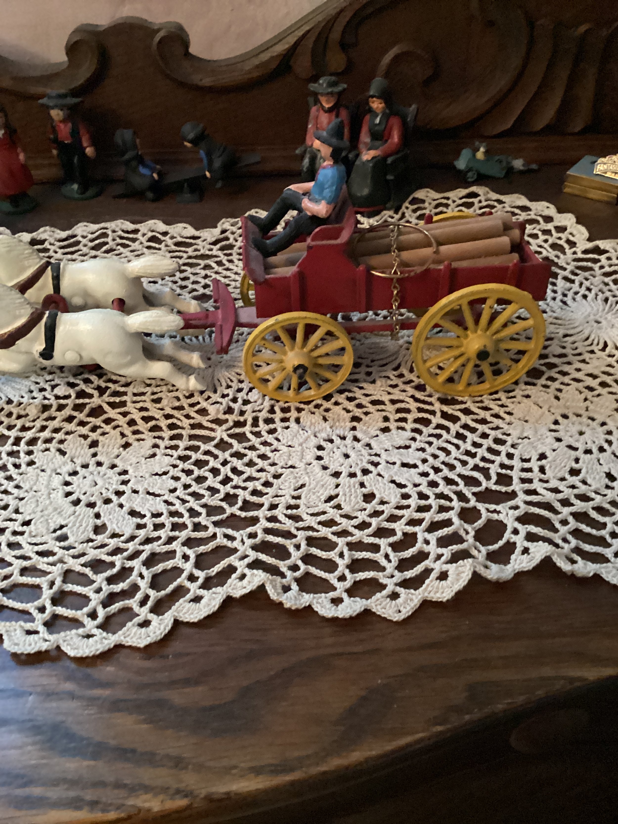 Arcade Cast Iron Wagon & 2 Horse Hitch, Set of CI Amish People