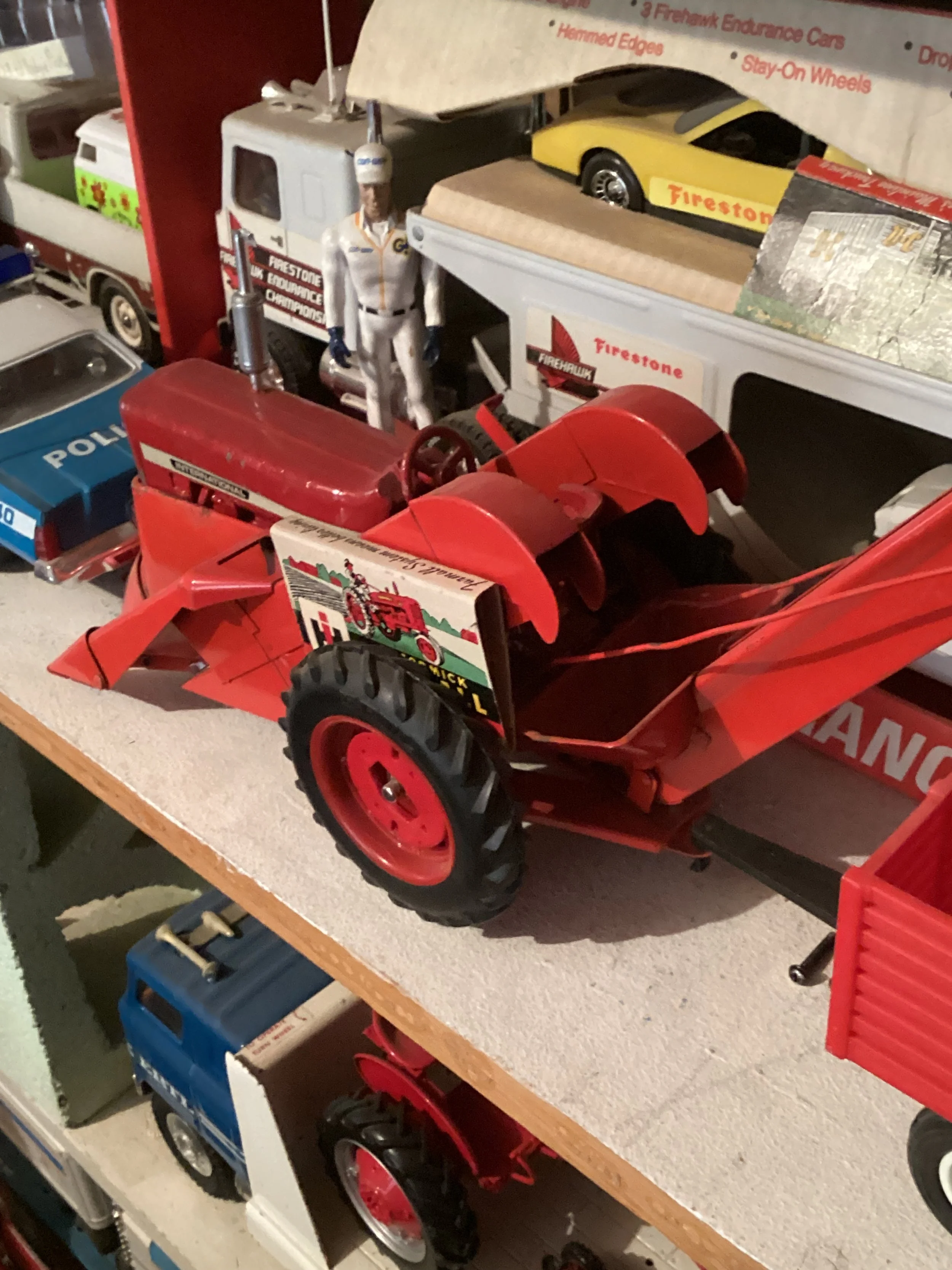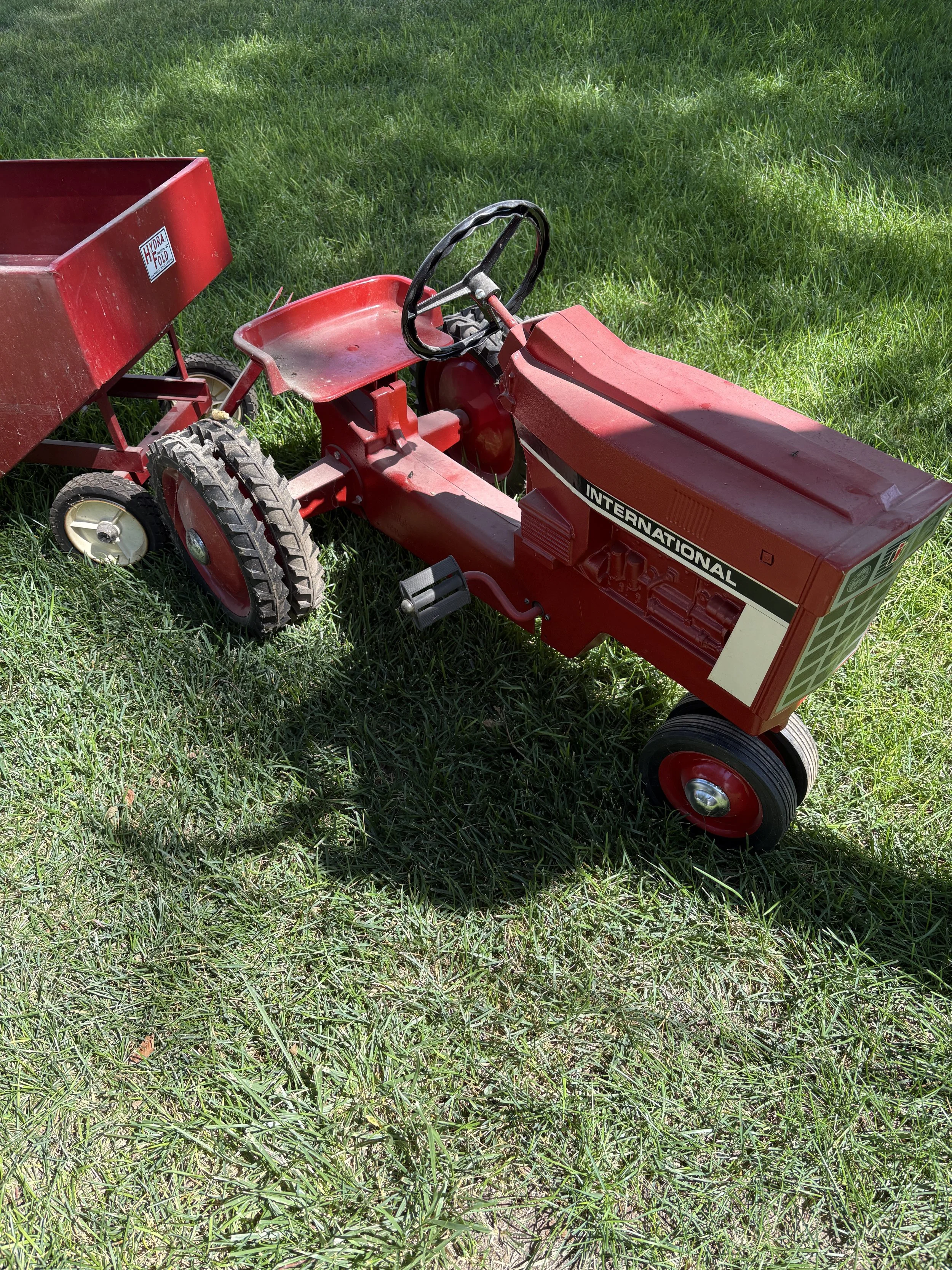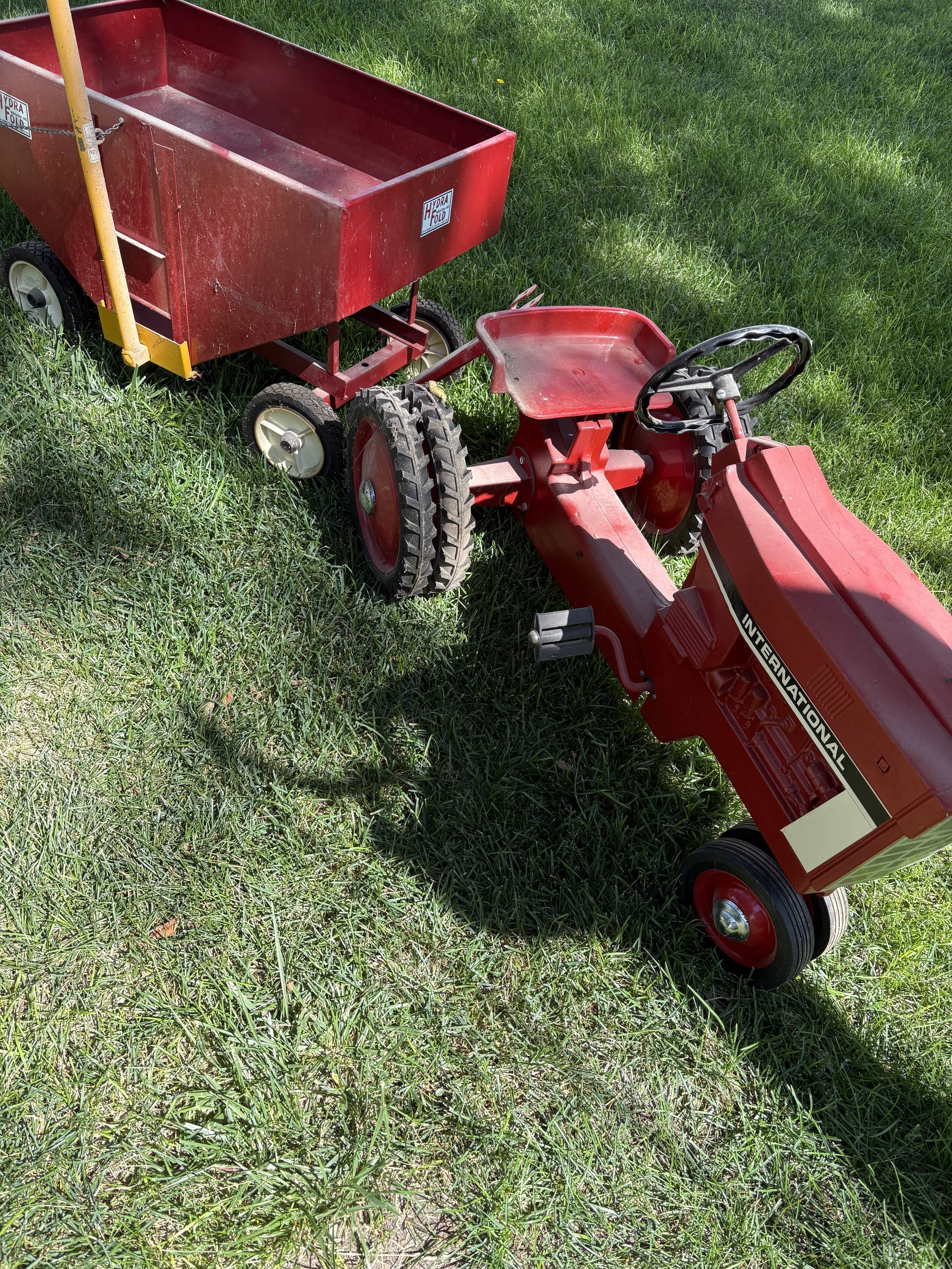 IH Dual Pedal Tractor, Hydra-Fold Grain Wagon, Playboy Pull Type Wagon, Dodge Ride-On Car, Pull Behind Dump Track Wagon
