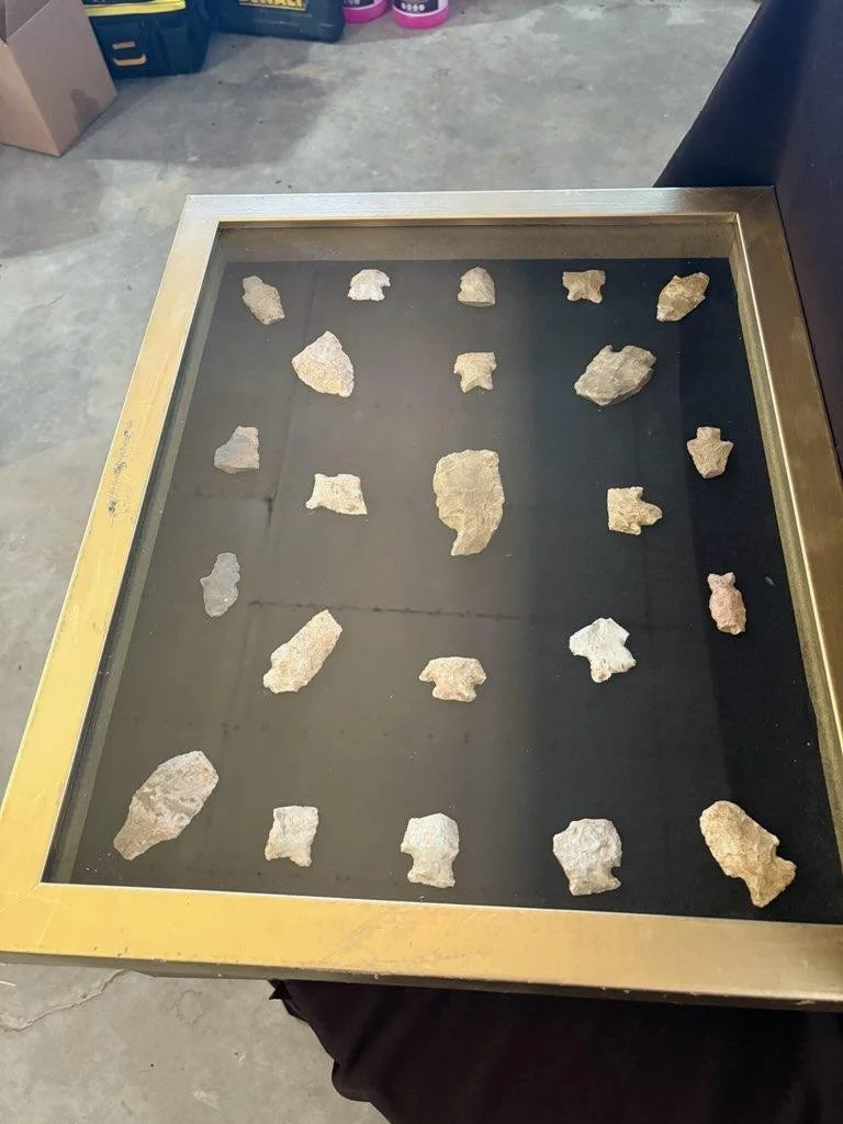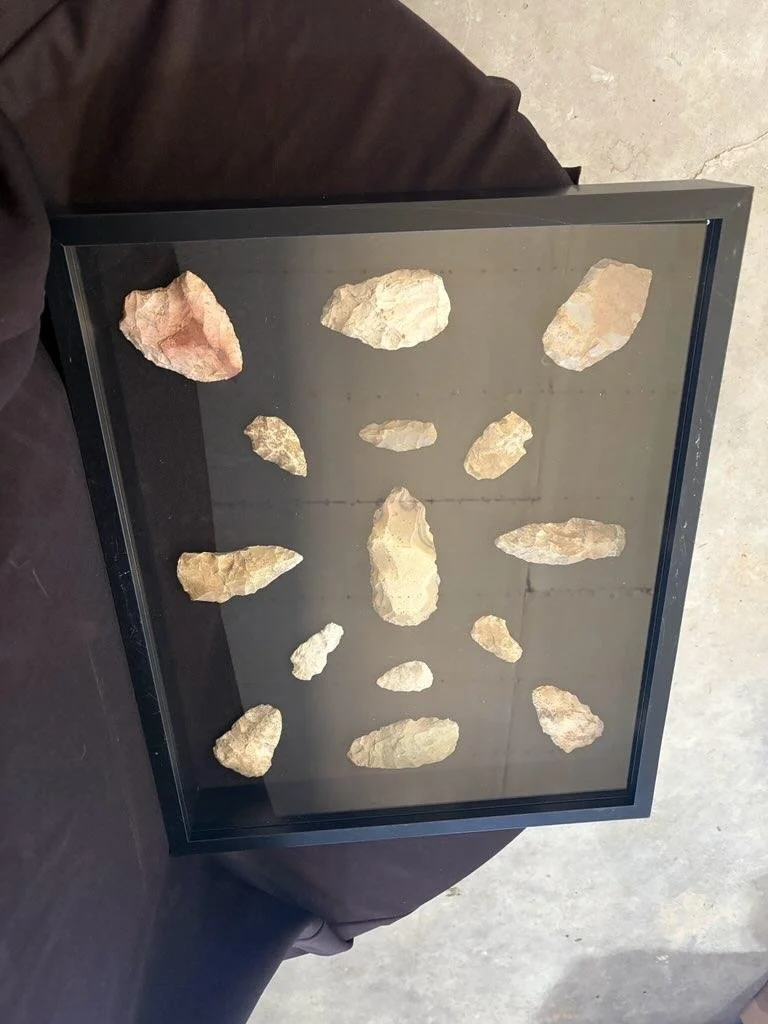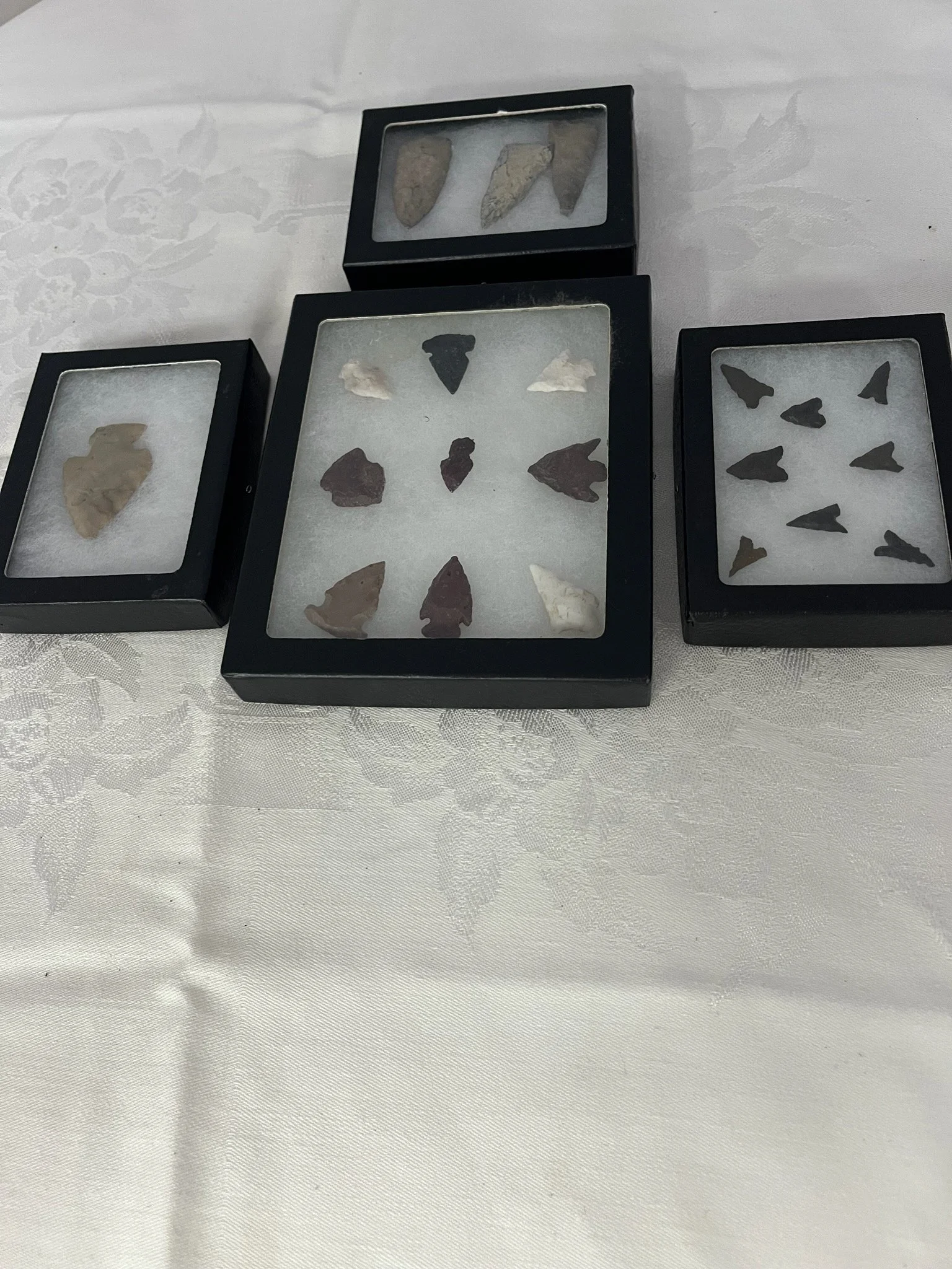 Points, Scrapers, Beads, Awls, Pottery Shards, Flint.