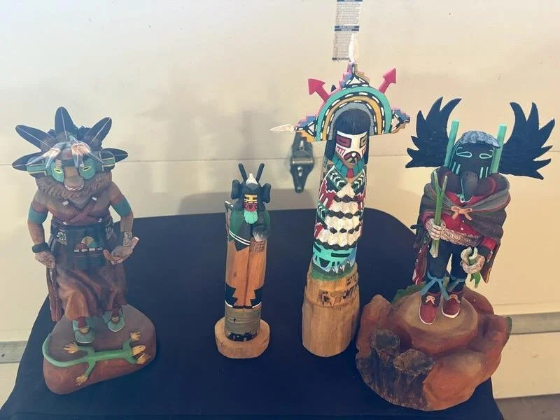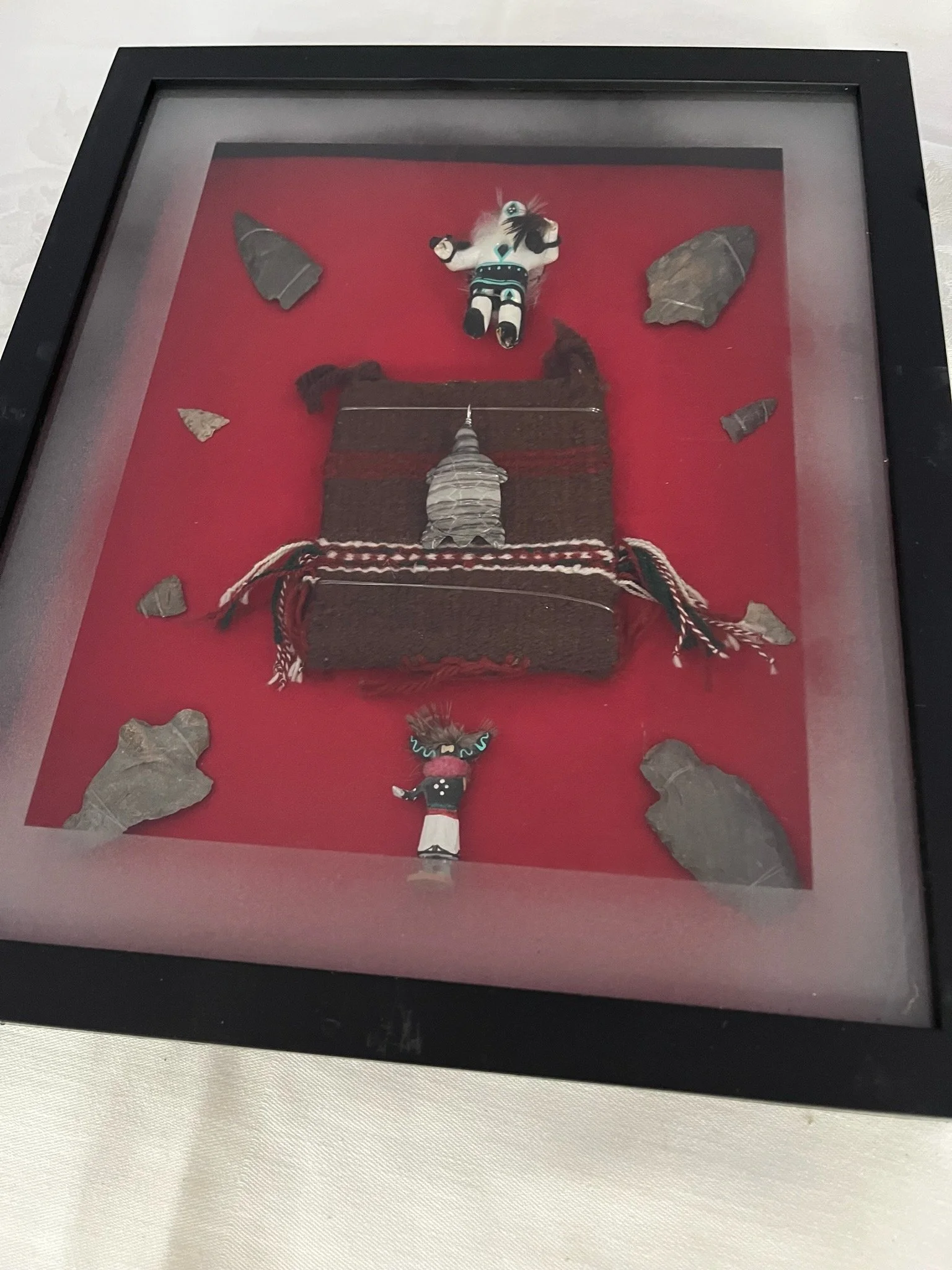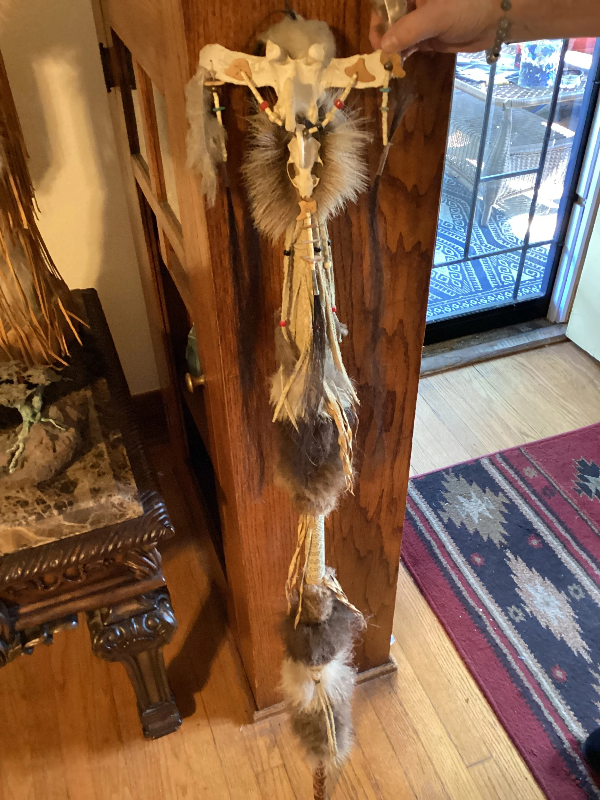 Maul Purchased In Valentine, NE, Soap Stone War Club, Hand Forged Club, Plains War Club, Antler Bowl Pipe Rawhide Wrapped (25.5” Long), Buffalo Wall Art w/ Feathers, Brazos Art Medicine Stick “Wind Spirit” #57/230 (26” Long), Medicine Bag w/ Horned Toads Buffalo Hide w/ Rawhide Fringe 13.5” X 5”, 2 Medicine Bundles, Bow & Arrow Wall Hangings, Chief’s Fan Prong Horn Antelope Beaded & Conchos 20”, Painted Buffalo Hide Shield, Chiefs/Medicine Man Stick 52”, Large Bear Kachina Doll 32” Tall X 8” Wide, Horn Rattle 29”, Marvin Polacca Signed White Corn Maiden Manataka, Signed John Sakiestemci Painted Gourd Rattle, Painted Weaving Shuttles, Painted Child’s Bow & Arrow, Hoivan Badger Kachina, G Benally Navajo Mountain Sheep Kachina, Robert Harris Jr White Chin Hopi Kachina, L Maho Butterfly Boy Hopi Kachina, Kenny Ovah Lizard Kachina Hopi First Mesa, Clarina Poleahla Crow Man Angwusi, Roanna Jackson Poolili Mana Kachina, Meldon Lamayaktewa Crow Mother Hopi Kachina, Emmett Torivio Butterfly Maiden, Baby Rattle, Eric Nastacio 4 Pc, Hopi Kachina, Picasso Marble Utah Navajo Bear, Storyteller Pottery Bear, Tribal Doll, Navajo Woven Sash, Plains Catlinite Pipe Bowl Circa 1850-1875, Stone Tube Pipe 5” (Found In Elbert County, CO By Lewis Brunk 1880-1943), Plains Bison Horn Spoon, Chippewa Ash Splint Basket Circa 1930’s, Chippewa Ash Splint & Sweetgrass Basket Circa 1920’s