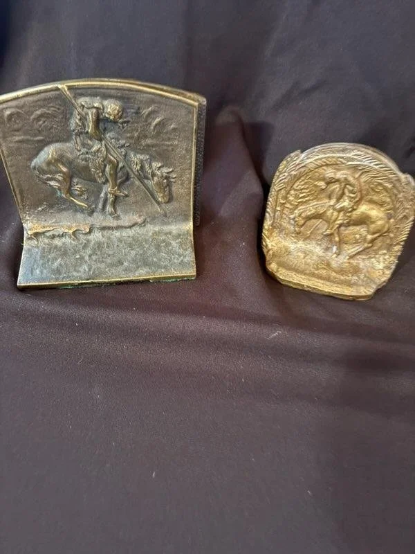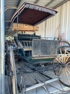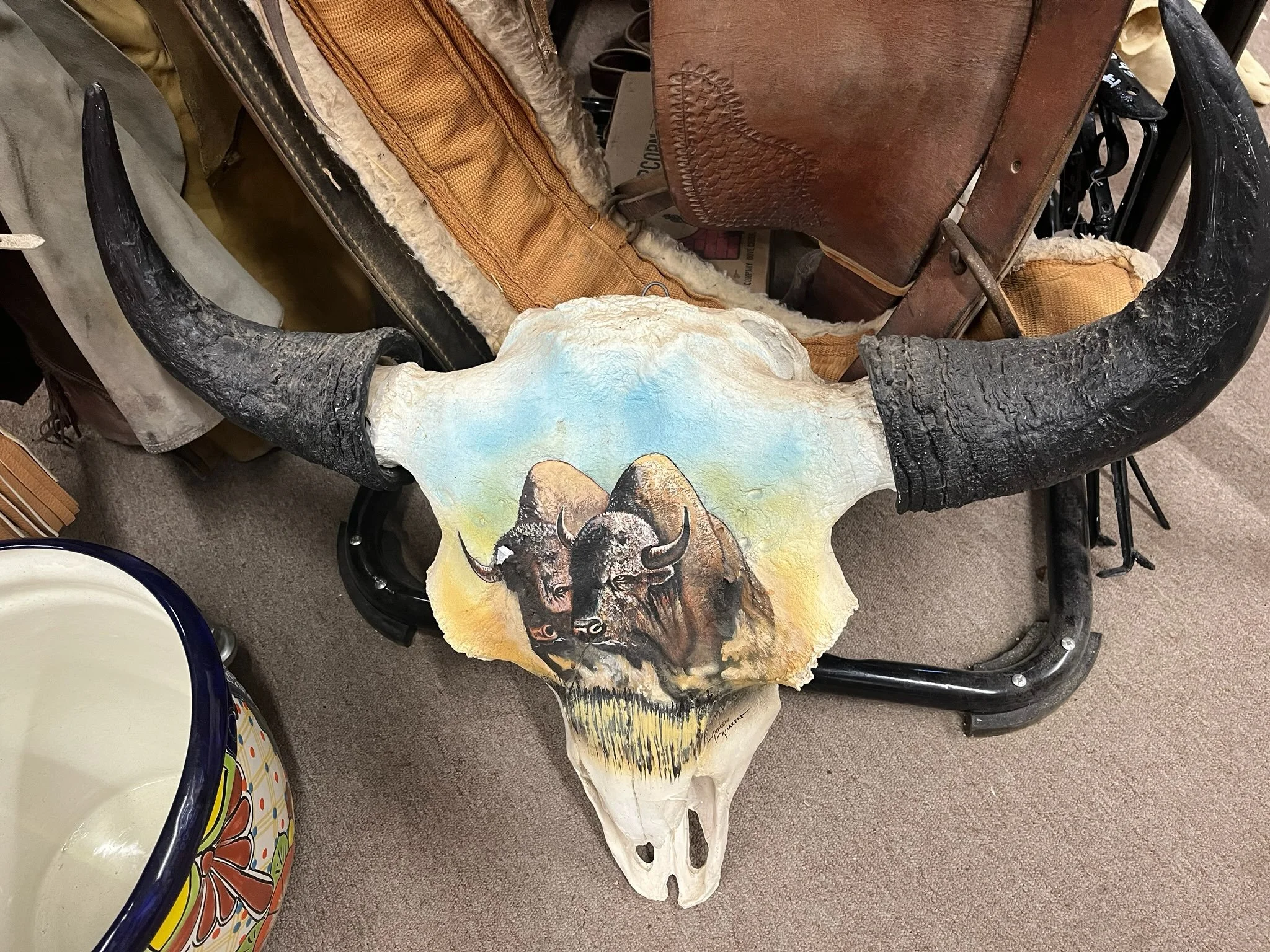Horse Buggy 2-Seater w/ Fringe On Top, 2 Seat Training Cart, 4’ Original Gallagher Cigar Store Indian, Leather Singer Long Arm Treadle Sewing Machine, Collapsible Metal 2-Wheel Garden Cart, Tokens, Joseph Allen & Sons Knife & Scabbard Sheffield England Tooled Leather Gun Scabbard, Hand Made Chap Racks, Bridle Racks, Bridle Hangers, CI Horsehead Bridle Hooks, Thomas Mfg. Co Fencing Tool, Cast Building Plaque “On This Site In 1897 Nothing Happened”, Brass End of Trail Bookends (2 Sets), 2 Santa Fe Railroad Adv Prints, 3 Native American Prints, Pictorial Books, Western Art & Prints, Crockett Bit & Spur Sign, 1997 Colorado Brand Book, Saddlery Catalogs, Bit & Spur Books, CI Steer Head Hanger, Sleigh Bells, Wind Chime, Horseshoe Western Foot Stool, Hand Made Cowboy Metal Art Deco, Windmill Clock, Pony Express Chewing Tobacco Brass Spittoon, Pair of Pistol Lamps, Vintage Candlestick Telephone Lamp, Child’s Horsehair Belt, CI Dog Nut Cracker, Bronze Boot Vase, CI Nut Cracker, Hand Made Boot Scrapers or Letter Holders, Harness Trace Holder Displays, Hand Made Saddle Rack, Heston NFR Belt Buckles, Hudson Bay Saddle Blanket, Cast Aluminum 3’ Boot & Spur, Carved Wooden Boots w/ Metal Spurs, Chainsaw Carved Wooden Boots, 2 Sombrero Ashtrays, Wooden Stirrups, Oxbow Stirrups, Card Suit Antler Concho Set, State of TX Concho Set, Western Metal Art, Harness Rings & Straps, Hames, Double Trees, Single Trees, Horseshoe Ash Tray, Leather Reins (New), Antique & Vintage Curry Comb Collection, Rawhide Bosal, Trace Holders Advertising, Harness Buckles, Leather Cuffs, Collection Of 1960/70’s Western Decanters, Moline Wagon Poster 19”X25”, Glenwood & Elmwood Ranges Adv Poster 16”X25”, Wagon Picture on Mirror, Horsehair Hat Bands, Handmade Cowboy Hat by Matt Palmer (Never Worn), O’Farrell Custom Cowboy Hat, Cowboy Boots, Ladies Custom Doeskin Fringed Jacket, Lee Denim Jacket