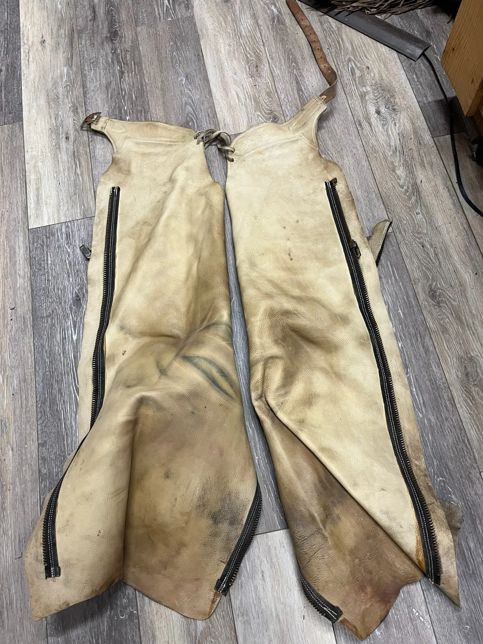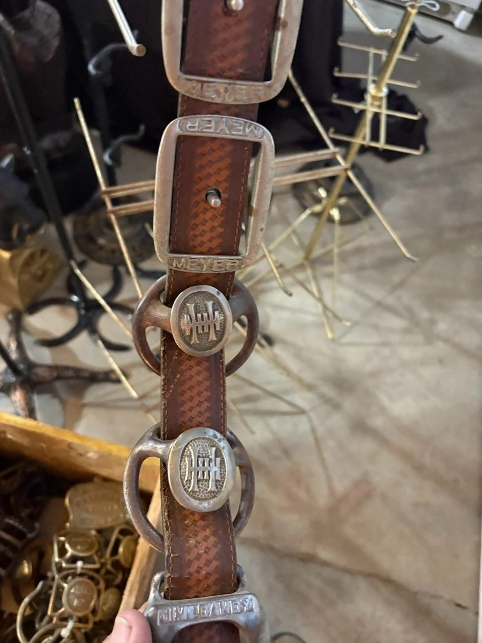 Cavalry Bridle w/ Brass Buttons & Conchos w/ Buermann Arrow Bit, Yuma Territorial Prison Horsehair Braided Headstalls One w/ Buermann Half Breed Bird Bit & Horsehead Conchos One w/ Buermann S Bit, Canyon City Prison Inlaid Mother of Pearl & Silver Concho Headstall w/ Buermann S Bit & Horsehair Braided Reins, Buermann Lady Leg Bit, Cavalry Bits, Spurs & Stirrups, Crockett Reynaldi Bit On Leather Headstall, 100’s of Bits, Auggie Bjorklun Branded Chaps, Antique Bat Wing Chaps, Split Cowhide Show Chaps