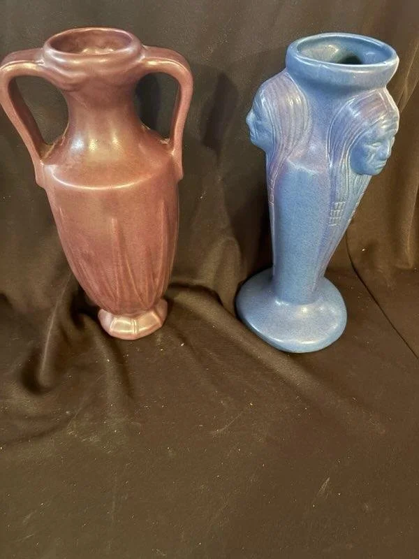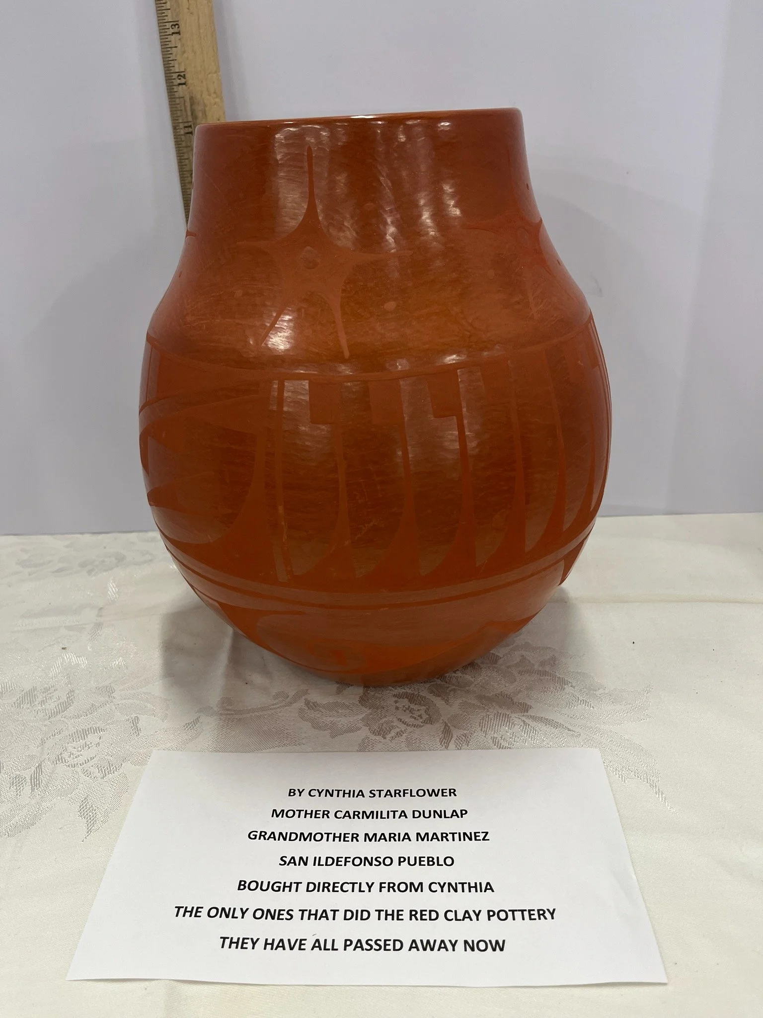 Van Briggle Pottery Indian Bust Collection (6), Van Briggle Pottery Vase 3 Face Indian Design, Van Briggle Vase 2 Handle Design, Clinton Polacca Nampeyo Acoma (2 Pcs), Bessie Yepa Jemez Pueblo, Denise Martinez Santa Clara Black Clay, JM SDD Santa Clara Black Clay, Signed Santa Clara Black Clay Pcs, Navajo Man & Women Figurines, Pottery Mask Wall Hanging #10 22” Long, Turkey Fan Mask #17 30” Long, Peruvian Pot Large, 3 Pcs of Cynthia Starflower, Buyarini Pottery Pc, Fawn Pottery